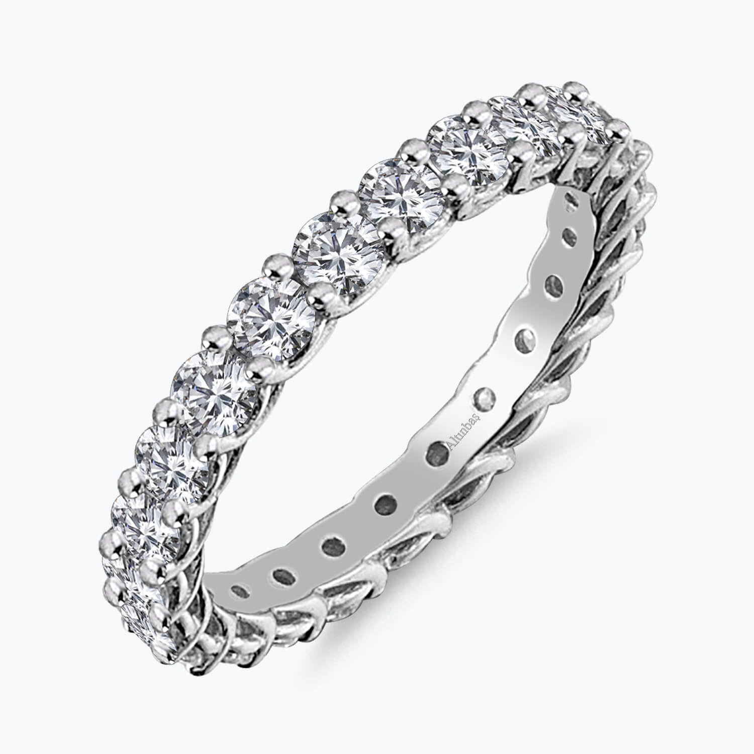 Introducing the Eternity Gold Ring from Altınbaş Jewelry, a luxury brand that's synonymous with sophistication and quality. This exquisite piece is more than just an accessory, it's an emblem of love and devotion. Crafted from 14K white gold, this ring exudes a timeless elegance that will captivate and enchant. The Eternity Gold Ring is intricately designed for a regal look. Every detail is meticulously crafted, showcasing the high level of craftsmanship that Altınbaş Jewelry is renowned for. The use of white gold adds a touch of contemporary flair to this classic design, making it a versatile piece that can be worn for any occasion. Adorning this beautiful ring is an array of cubic zirconia, adding a sparkle that's impossible to ignore. Each stone is carefully selected and set, ensuring a dazzling display of brilliance with every movement of your hand. The Eternity Gold Ring is more than just a piece of jewelry. It's an infinite symbol of a shared future, making it the perfect gift for a loved one. Whether you're celebrating an anniversary, a birthday, or simply expressing your love, this ring is a beautiful way to say 'forever'. At Altınbaş Jewelry, we believe in creating pieces that are not only beautiful but also meaningful. The Eternity Gold Ring is a testament to this belief, a piece that's not only visually stunning but also rich in symbolism and sentiment. Experience the allure and charm of the Eternity Gold Ring. A piece that is as enduring as your love, and as timeless as your devotion.
