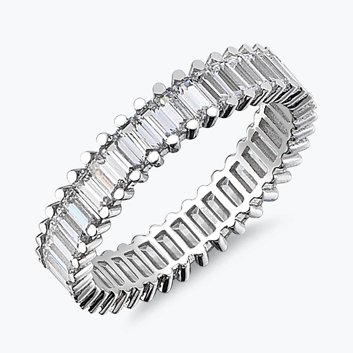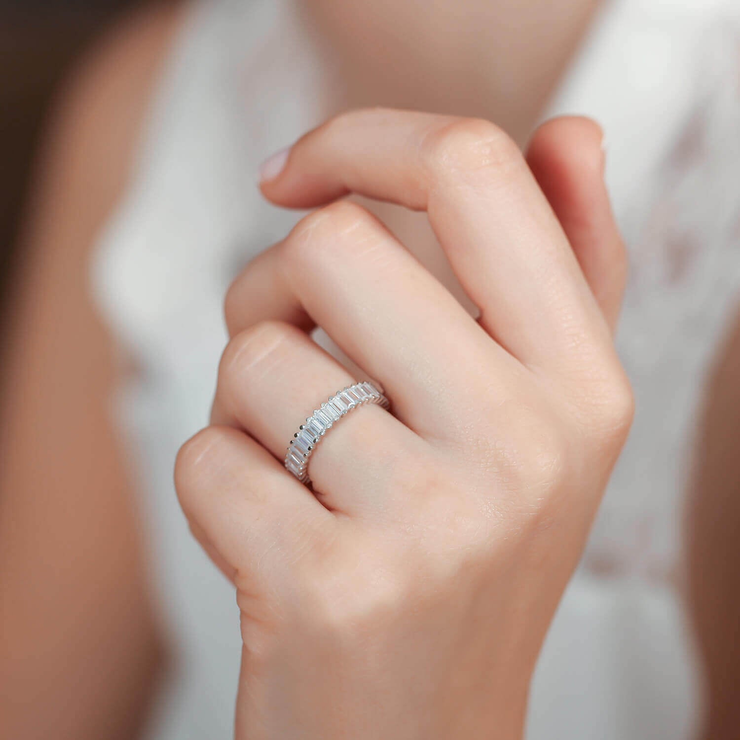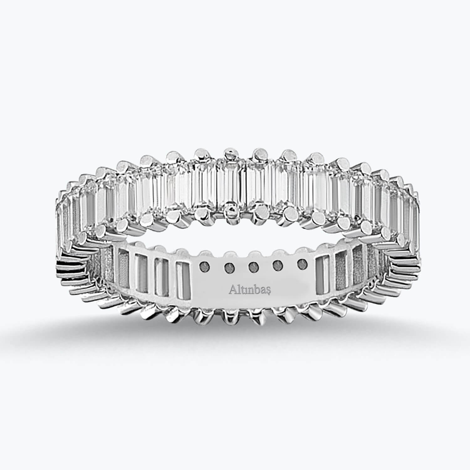 Introducing the Eternity Gold Ring from Altınbaş Jewelry, a piece that is more than just an accessory. This ring is a manifestation of wealth and prestige, meticulously crafted for women who appreciate the finer things in life. Made from 14K white gold, the ring exudes a luxurious appeal that is both timeless and contemporary. The white gold composition adds a touch of elegance and sophistication, making it the perfect piece for any occasion. The ring is adorned with cubic zirconia stones, cut in a distinctive baguette style. These stones add a unique charm to the ring, reflecting light in the most enchanting way. Each stone is carefully set, showcasing our commitment to quality and precision. The design of the ring is intricate and appealing to the modern woman. It captures the essence of contemporary style, while still maintaining a classic appeal. With its clean lines and sparkling stones, this ring is sure to turn heads wherever you go. The Eternity Gold Ring represents an infinite loop of commitment, making it an ideal gift for anniversaries or to celebrate enduring love. This ring is not just a piece of jewelry, but a symbol of everlasting bond and affection. With Altınbaş Jewelry, you are not just buying a ring, but investing in a piece that is crafted with love and precision. This Eternity Gold Ring is a testament to our commitment to excellence and our dedication to creating pieces that are truly extraordinary. Experience the luxury and sophistication of Altınbaş Jewelry with the Eternity Gold Ring. A piece that is not just worn, but cherished.