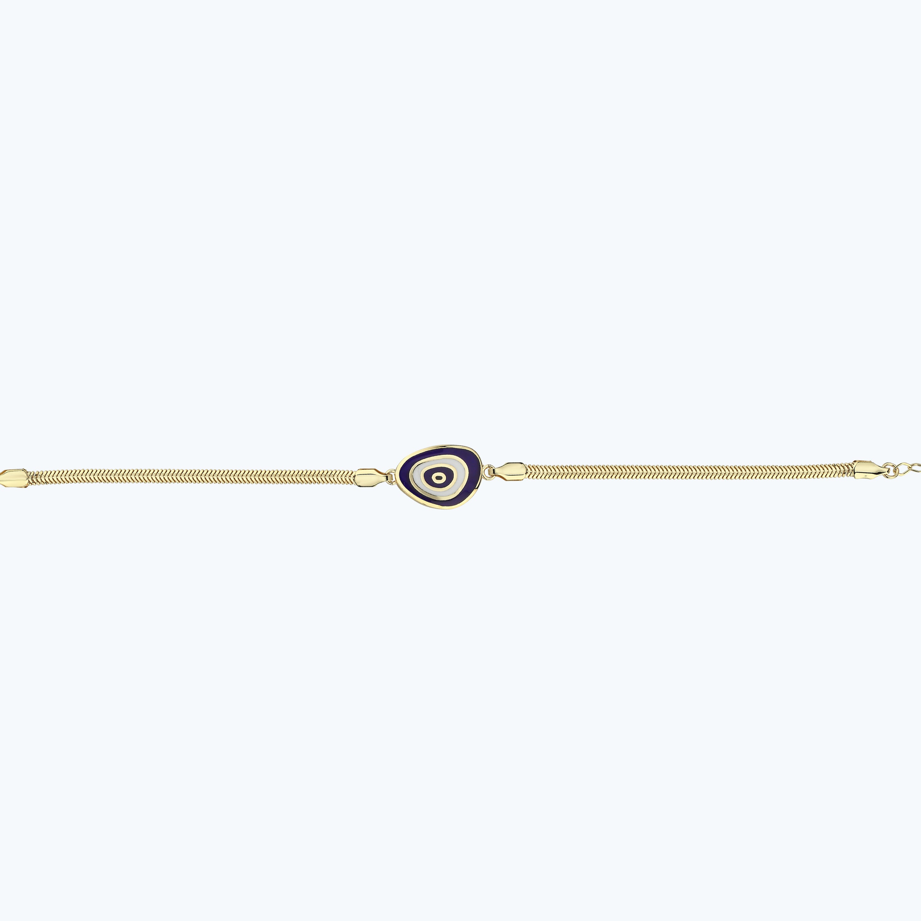 Homepage > Bride's Gift > Evil Eye Herringbone Chain Gold Bracelet