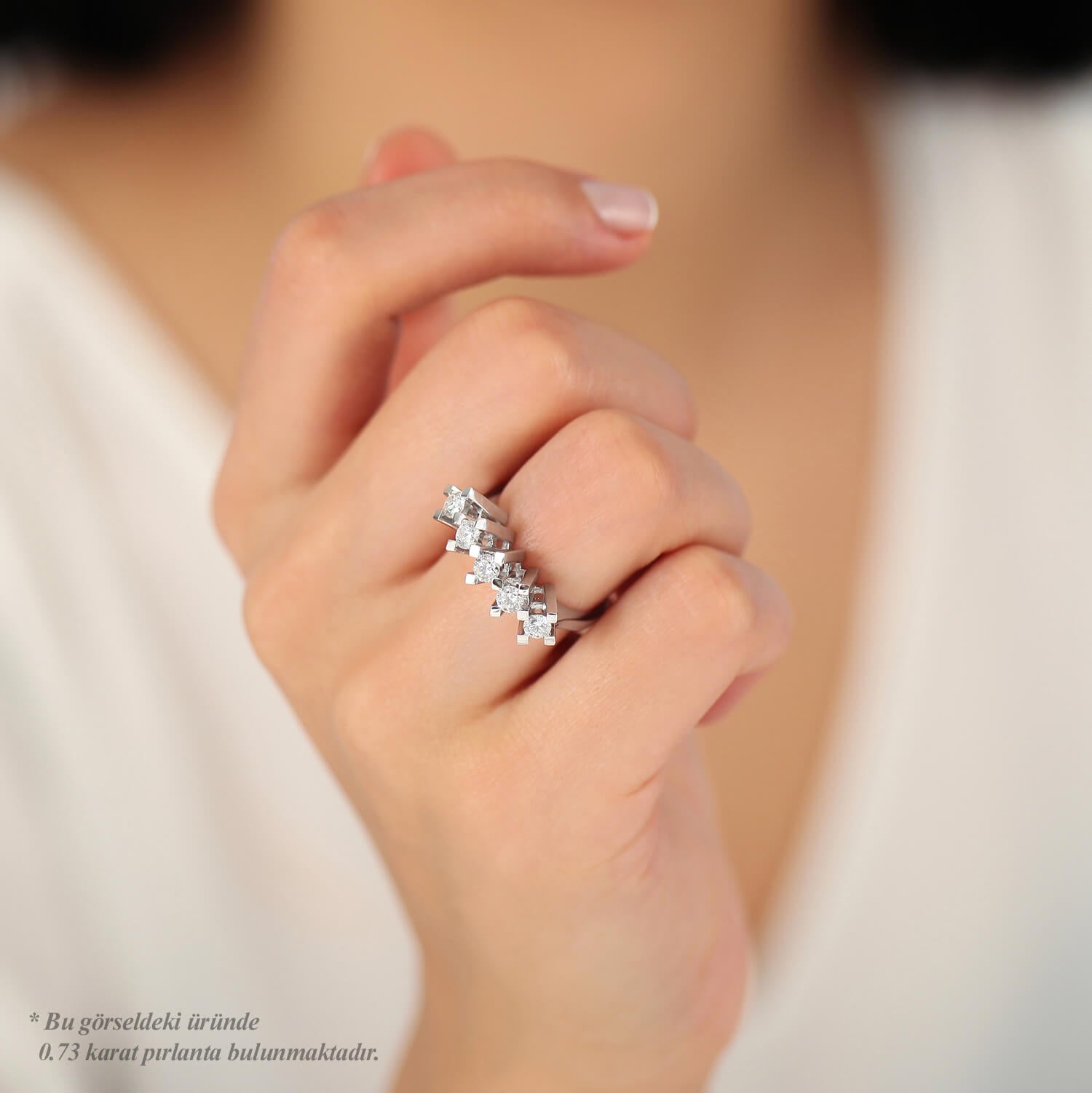 With a dainty design, the Altınbaş Jewellery Five Stone Diamond Ring is carefully handcrafted from 14K Solid Gold with the most sparkling pure diamond selected and carefully set by experienced craftsmen.