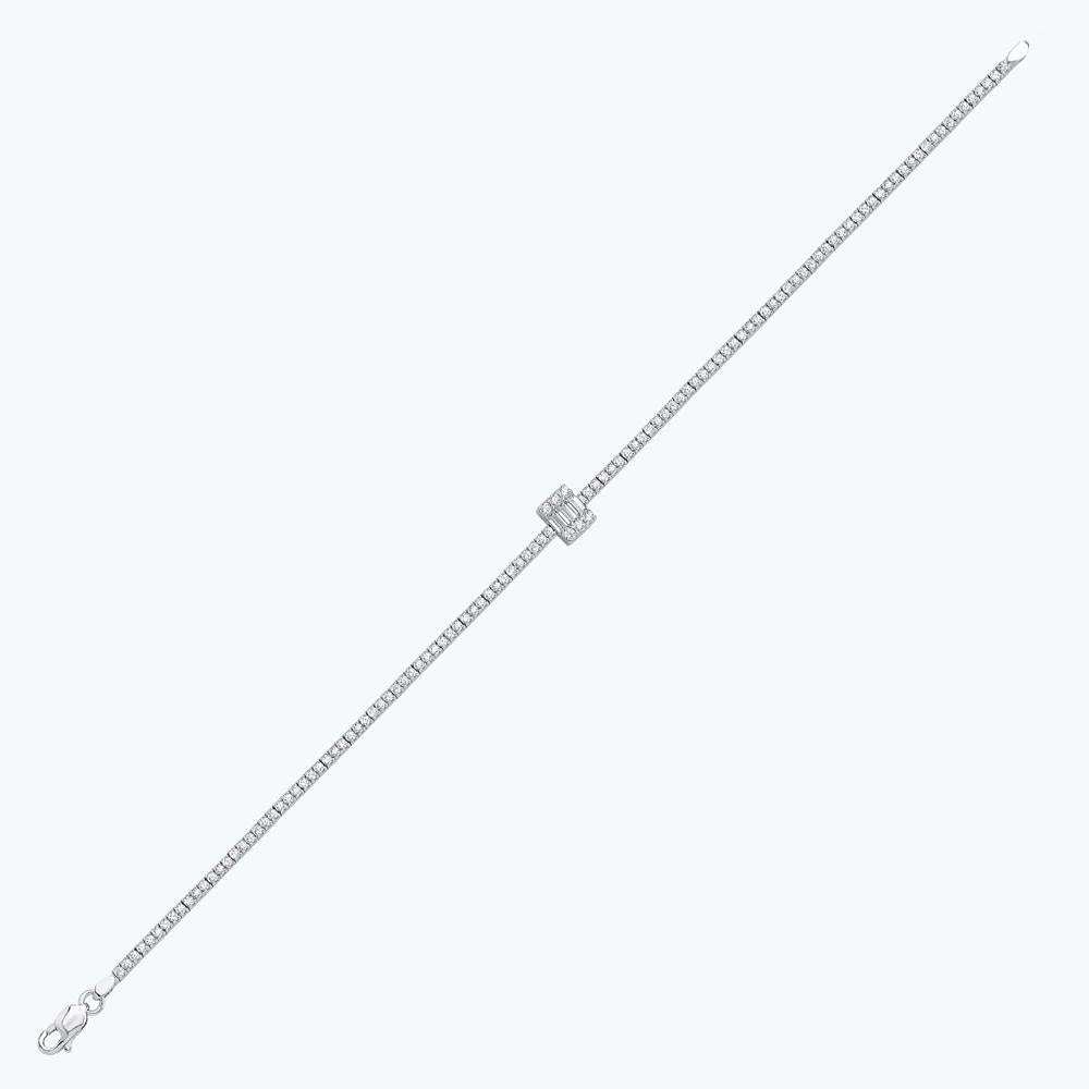 Experience the captivating allure of gold with this exquisite 14K white gold bracelet from Altınbaş Jewelry. This luxurious piece is designed to embody sophistication and quality, effortlessly capturing the essence of the brand. Crafted with meticulous attention to detail, the bracelet features an elegant baguette design, giving it a unique, standout appeal. The bracelet is adorned with stunning cubic zirconia stones, adding a touch of sparkle that beautifully complements the white gold. The use of 14K gold ensures durability and longevity, allowing you to enjoy this piece for many years to come. The white gold hue offers a modern, versatile aesthetic that can easily complement any outfit, whether for a special occasion or everyday wear. The bracelet's design is not just about aesthetics; it also represents purity and sanctity, making it a meaningful piece to own. The cubic zirconia stones enhance the bracelet's symbolic value, reflecting purity and clarity in their sparkling light. This bracelet is not just a piece of jewelry; it's a statement of elegance, sophistication, and personal values. It's a perfect gift for someone special or a luxurious treat for yourself. With its timeless design and high-quality materials, this bracelet from Altınbaş Jewelry is a piece that you will cherish forever. Embrace the captivating allure of gold and let this bracelet be a symbol of your unique style and refined taste. Experience the luxury and sophistication that comes with every Altınbaş Jewelry piece, and make this stunning 14K white gold bracelet a part of your jewelry collection today.