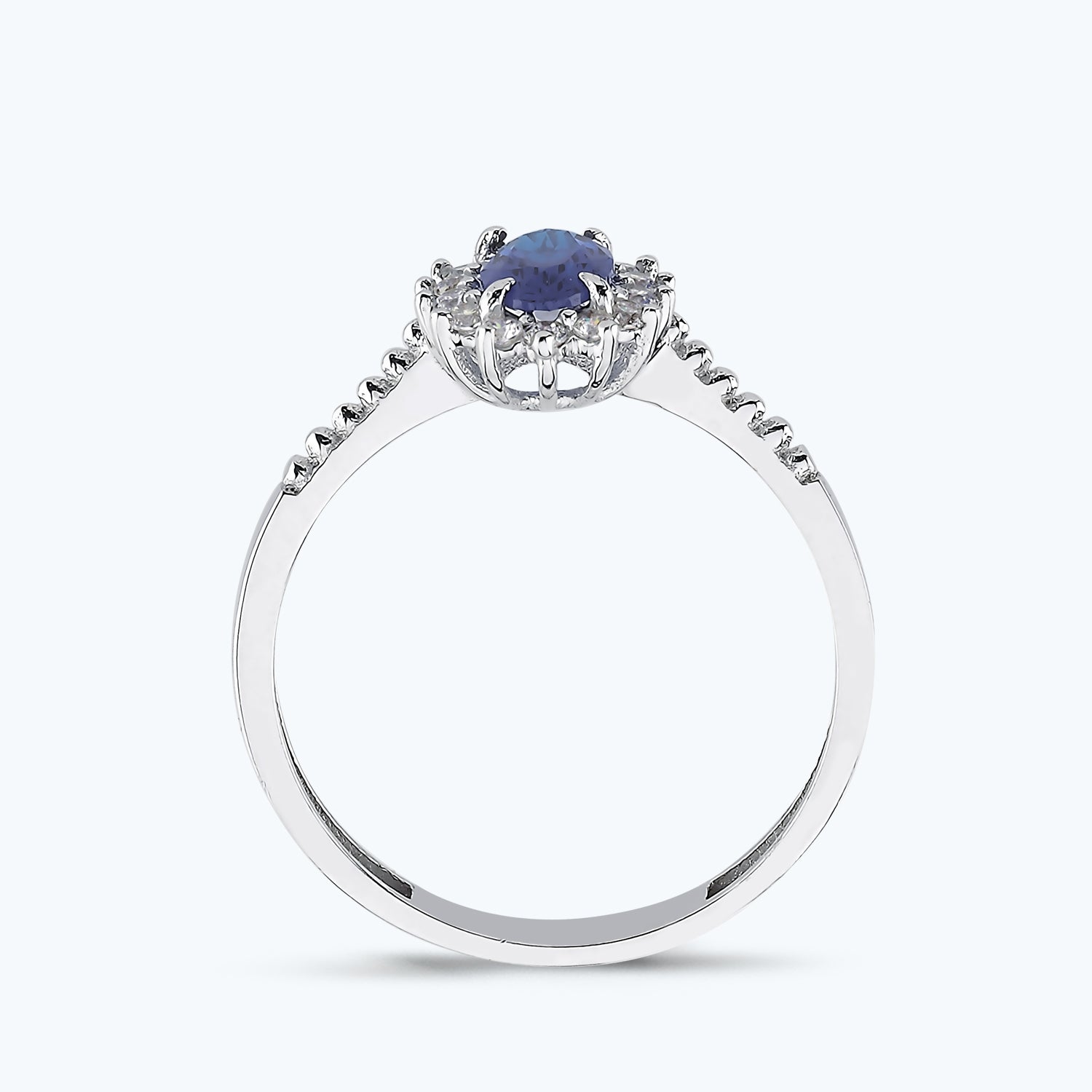Homepage > Cubic Zirconia > Gold Oval Ring with Navy Blue Stone