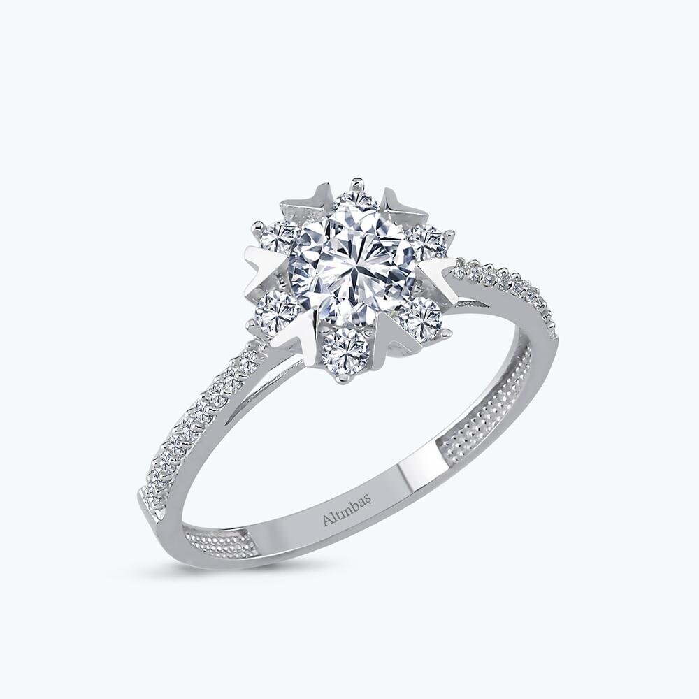 Homepage > Cubic Zirconia > Gold Solitaire Snowflake Ring