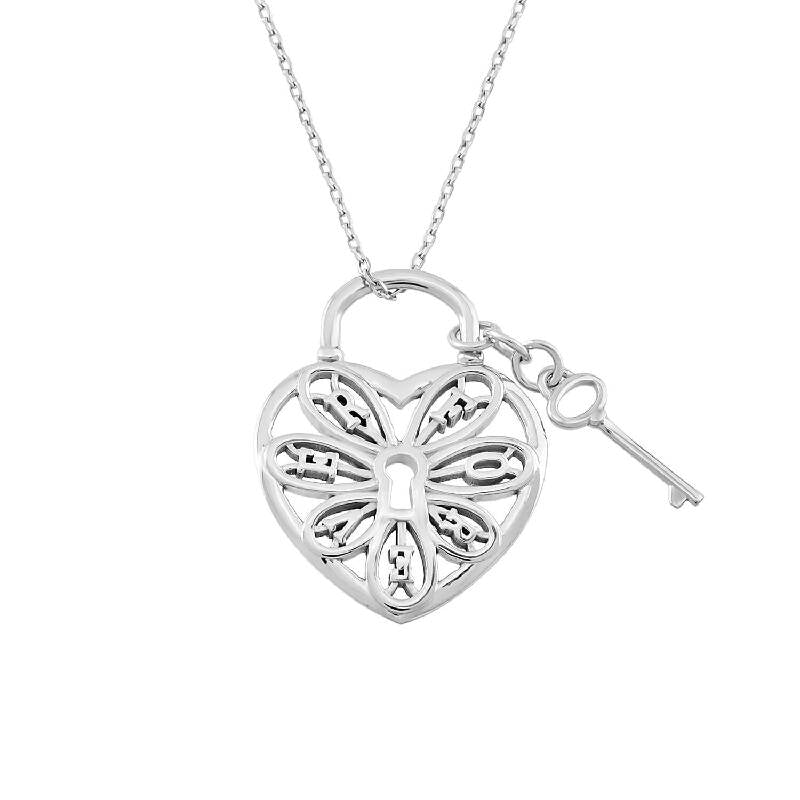 Homepage Jewelry > Necklaces > Heart & Key Silver Necklace