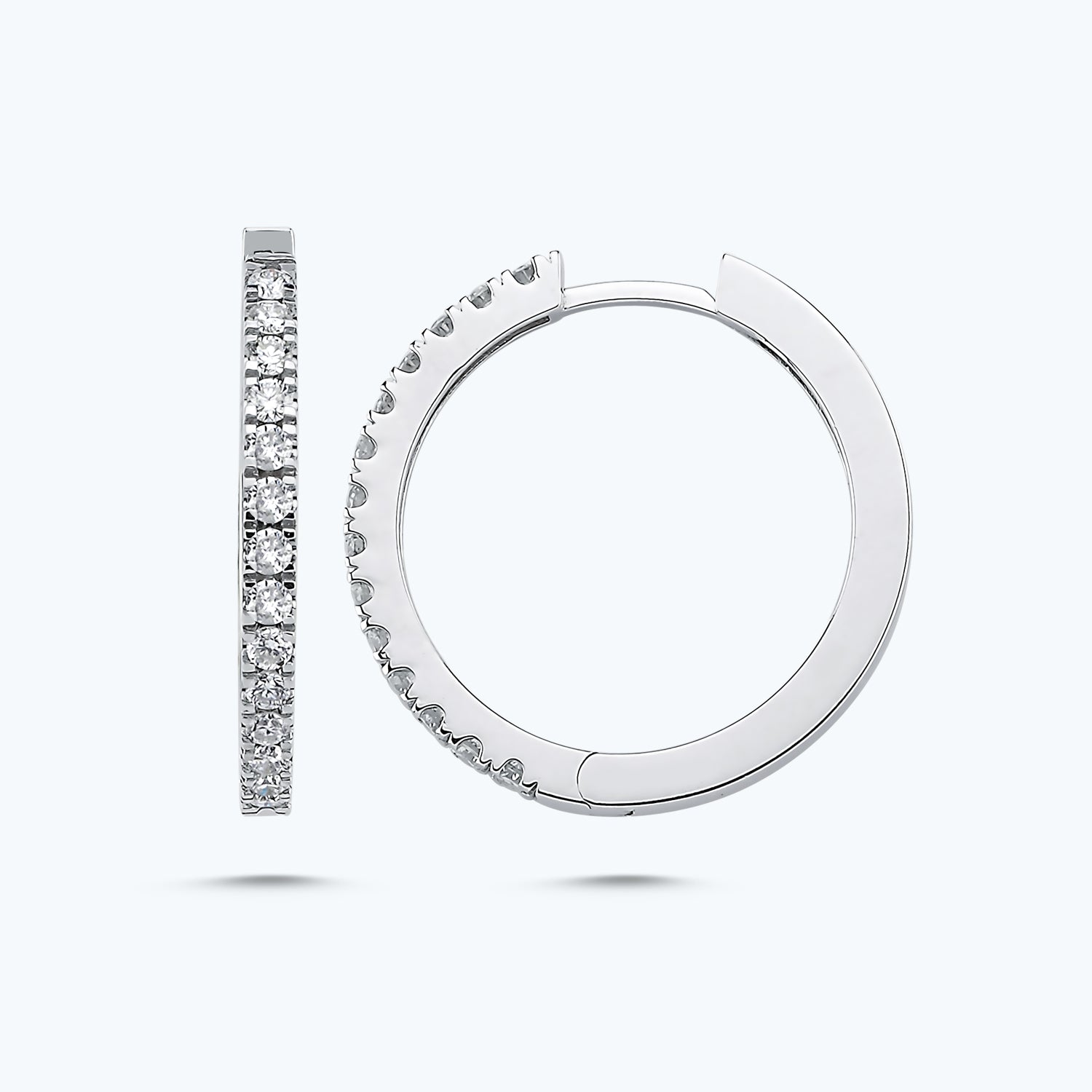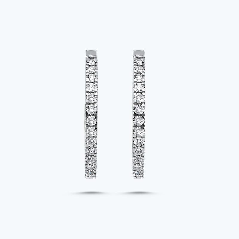 Step into the world of luxury and refinement with Altınbaş Jewelry's Hoop Diamond Earrings. These stunning pieces are meticulously crafted from 14K white gold, exuding an air of sophistication that is undeniably Altınbaş. The earrings feature a dazzling array of round-cut diamonds, each one chosen for its exceptional brilliance. These precious stones are securely set in a hoop design, a timeless symbol of unbroken continuity of style. The hoop shape is not just a design element, it's a testament to the enduring beauty and elegance of the wearer. The G color and SI clarity of the diamonds ensure that these earrings shine with an unparalleled radiance, capturing the light and reflecting it in a dance of sparkle and fire. The 14K white gold setting enhances the brilliance of the diamonds, providing a perfect balance of luxury and durability. Altınbaş’s Hoop Diamond Earrings are more than just jewelry – they are an epitome of refined taste. They are a statement of style, a testament to the wearer's discerning eye for quality and elegance. These earrings are not just a purchase, they are an investment in timeless style and sophistication. They are a gift to be cherished forever, a token of love and appreciation that will always remind the wearer of the special moments they represent. Whether it's a gift for a loved one or a treat for yourself, these Hoop Diamond Earrings from Altınbaş Jewelry are a perfect choice. They are a timeless piece of jewelry that will add a touch of luxury and elegance to any outfit, making every day feel like a special occasion. So, elevate your jewelry collection with Altınbaş's Hoop Diamond Earrings, a true symbol of sophistication and timeless elegance.