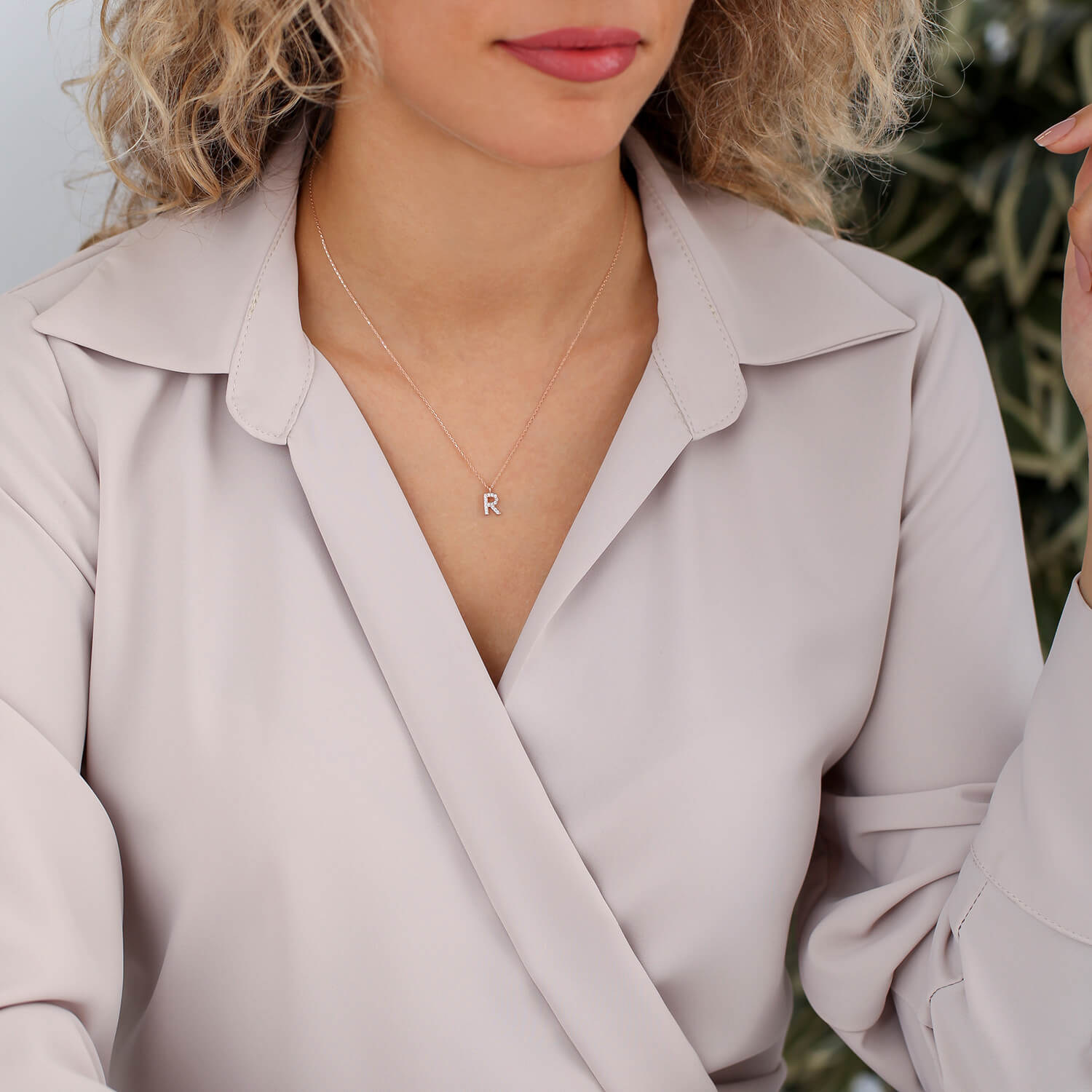 Homepage Jewelry > Necklaces > Letter R Gold Necklace