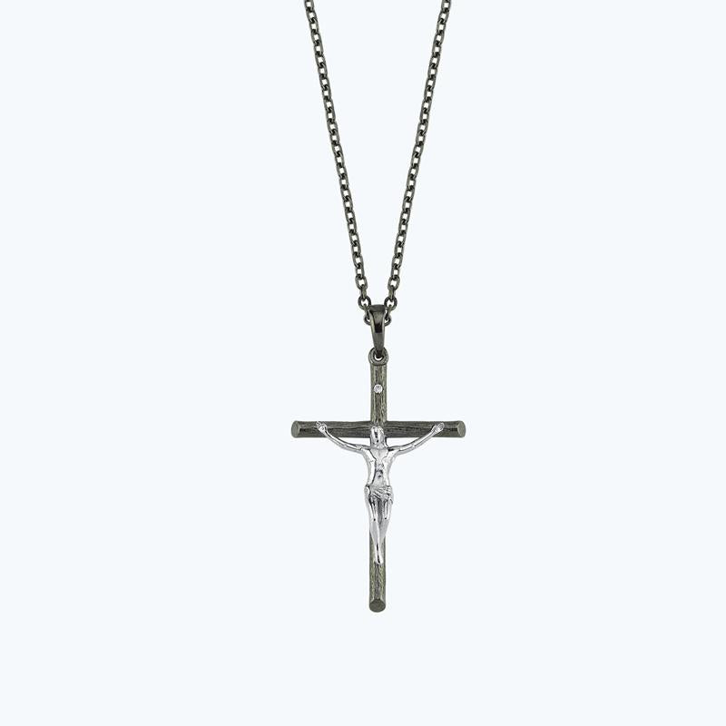 Homepage > Diamond > Mens Cross Silver Diamond Necklace