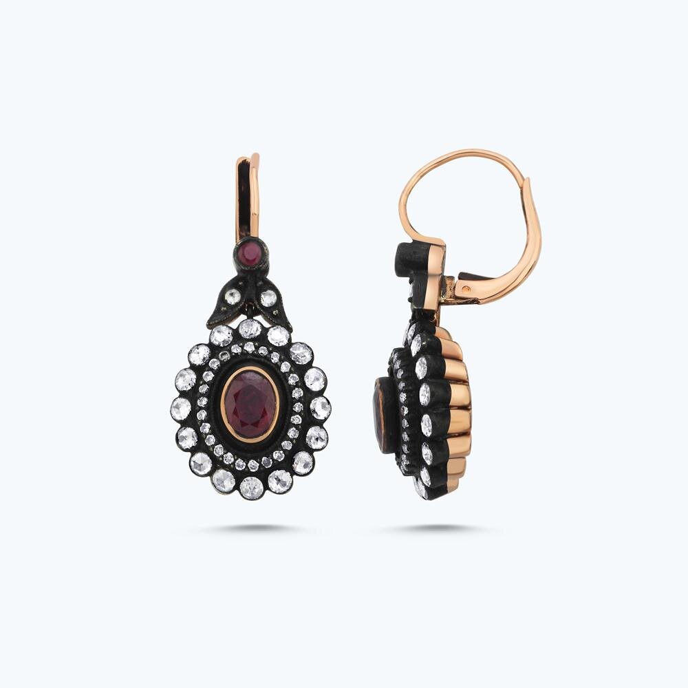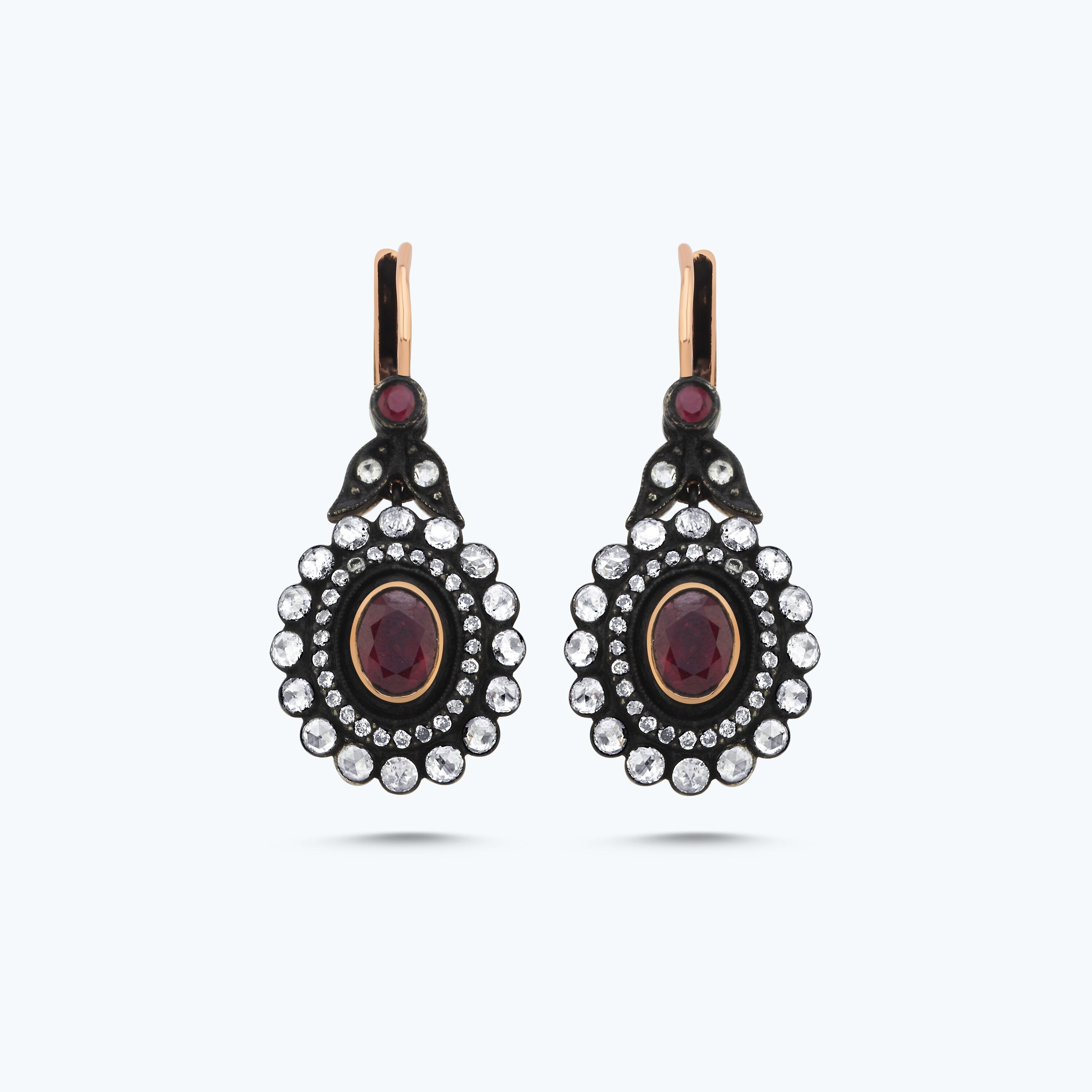 Homepage > Earrings > Oval Ruby Rose-Cut Diamond Earrings