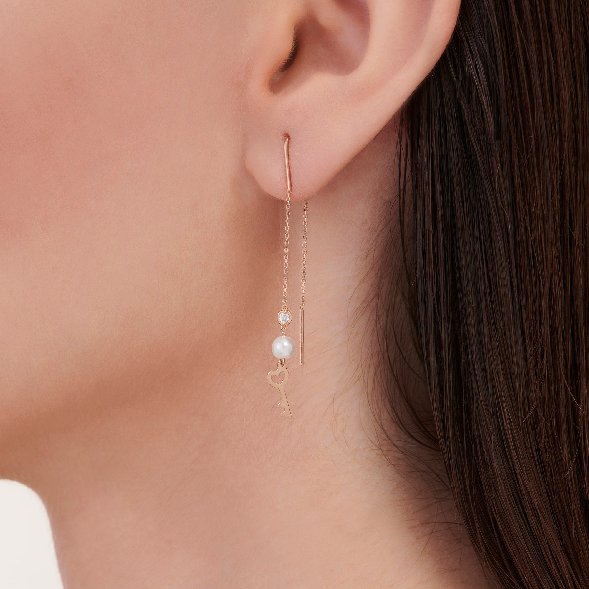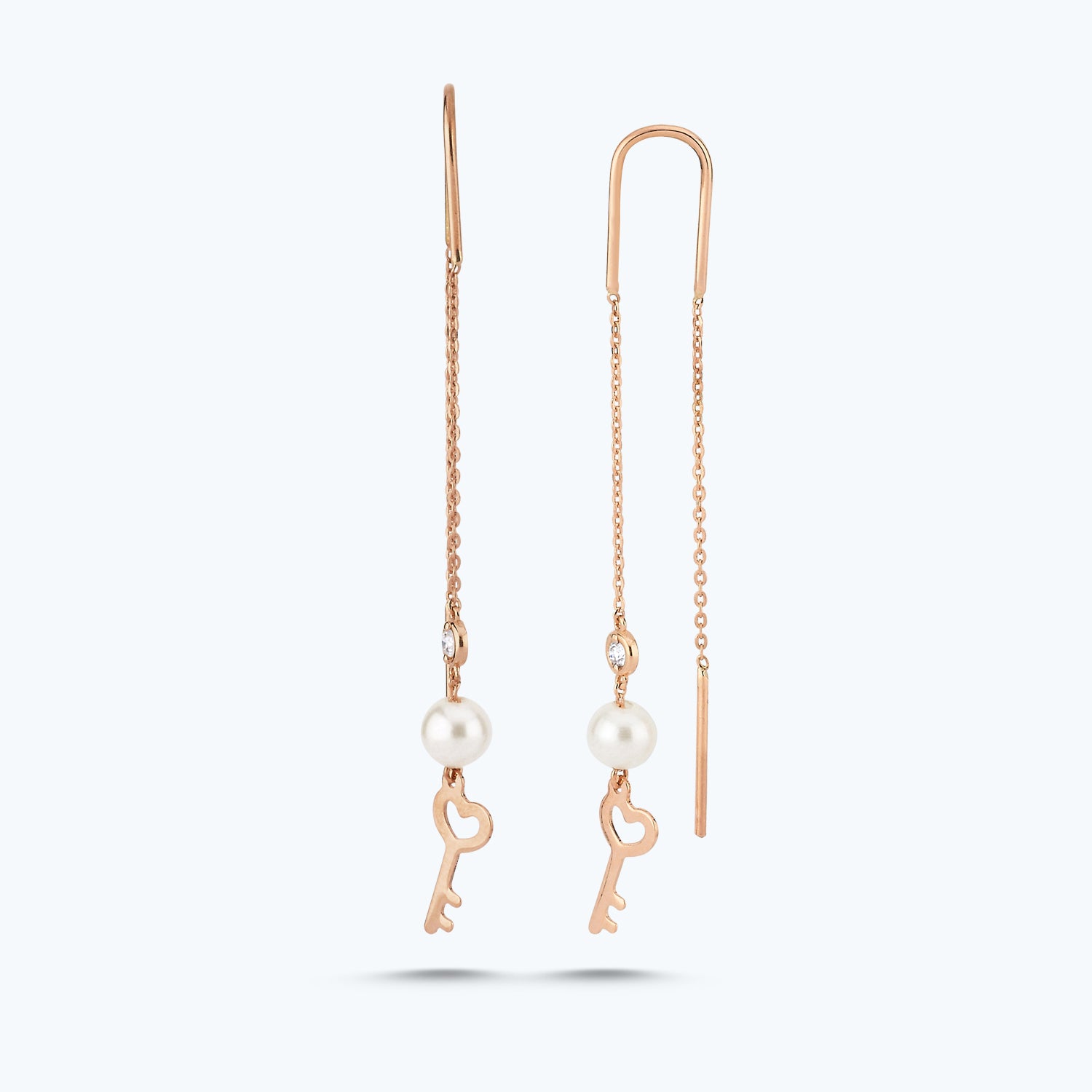 Introducing Altınbaş Jewelry's Pearl Diamond Earrings, a perfect embodiment of sophistication and quality. These exquisite earrings are meticulously crafted from 14K gold, exuding an irresistible charm that is sure to captivate the discerning eye. The gold used in these earrings is not just any gold, but a luxurious, high-quality 14K gold that radiates a soft pink hue, adding a unique touch to the overall design. At the heart of these earrings lie dazzling round diamonds, each carefully chosen for their brilliance and sparkle. These diamonds form a continuous circle of brilliance around the earrings, creating a mesmerizing effect that is hard to resist. It's not just their beauty that makes them special, these diamonds are also known to be a harbinger of good fortune, making these earrings not just a piece of jewelry, but a charm of luck and prosperity. The Pearl Diamond Earrings are not just about luxury and elegance, they also embrace the spirit of youth. The pink hue of the gold paired with the sparkling diamonds creates a youthful and vibrant design that is perfect for the young at heart. These earrings are versatile, making them a perfect choice for both day and night events. With their unique design and unparalleled quality, these earrings from Altınbaş Jewelry are more than just a piece of jewelry. They are a statement of style and elegance, a symbol of good fortune, and a celebration of youthfulness. Treat yourself or a loved one to these stunning earrings and experience the magic of Altınbaş Jewelry.