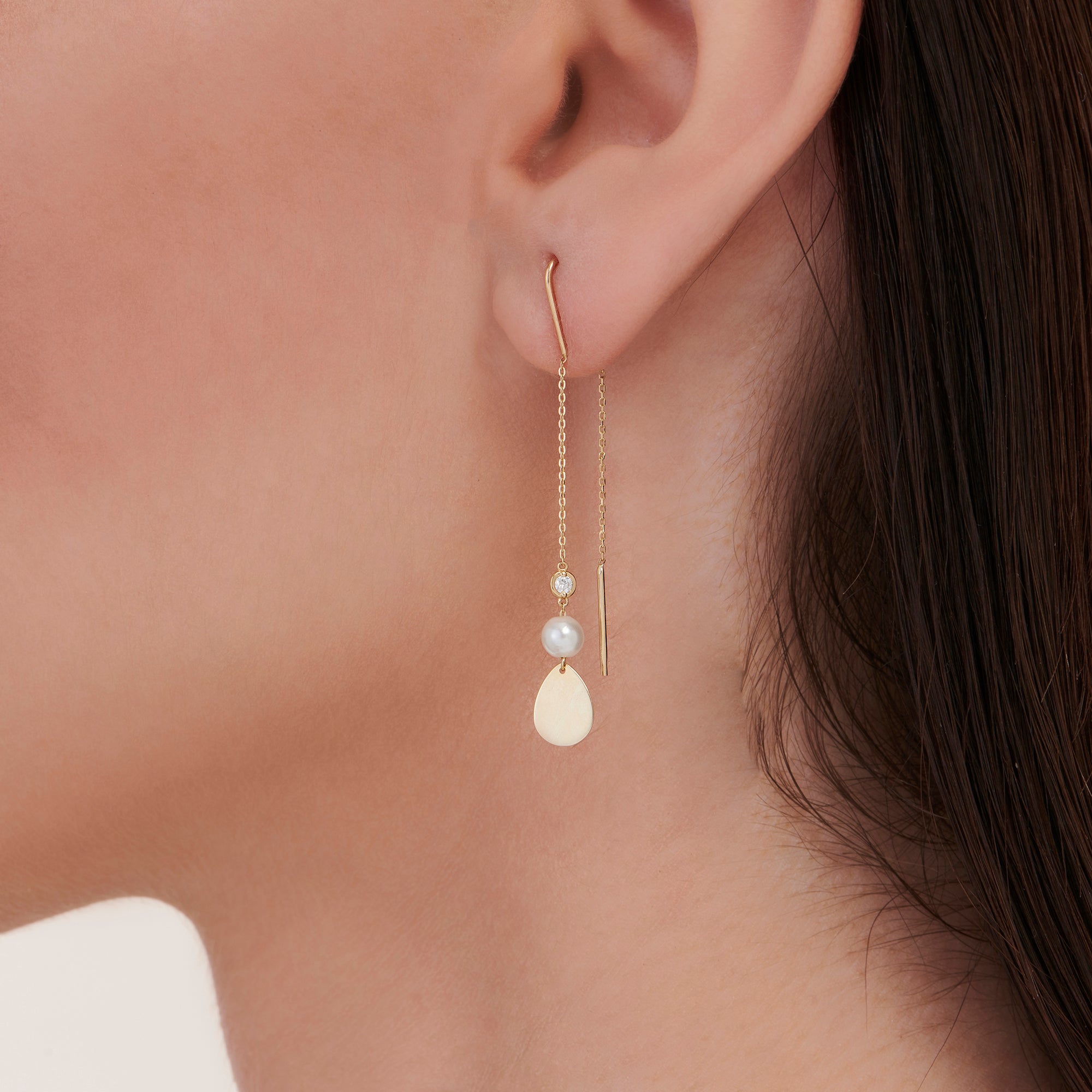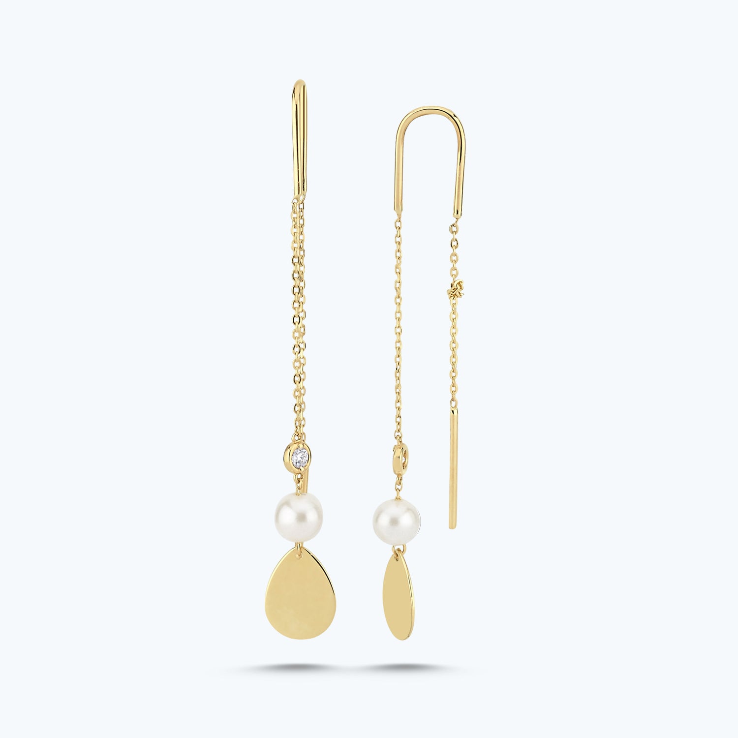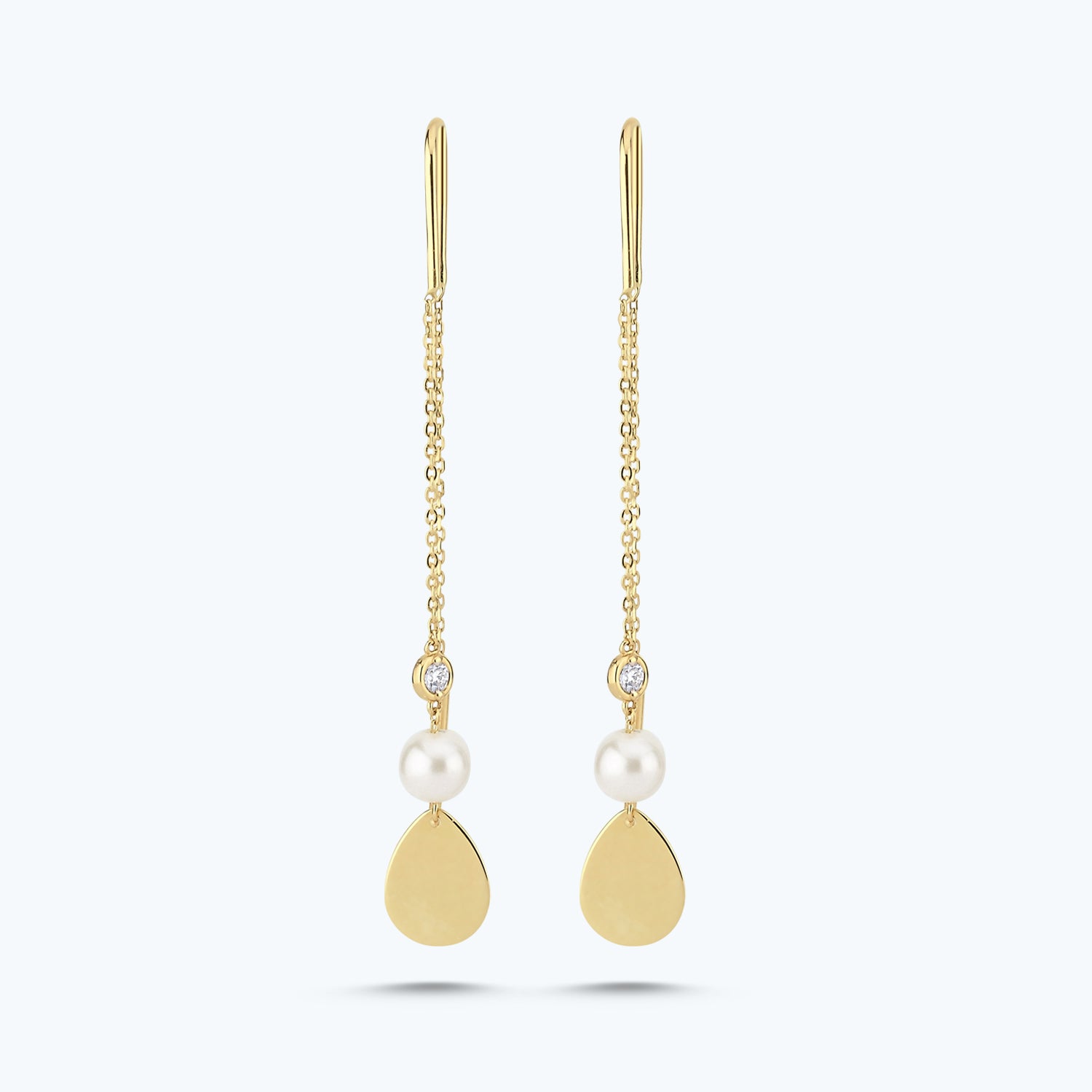 Introducing the Pearl Diamond Earrings from Altınbaş Jewelry, a symbol of infinite charm and elegance. These earrings are meticulously crafted from 14K gold, embodying sophistication and quality in every piece. The gold used in this pair is not just any gold, but 14K gold. This means it's not only durable and long-lasting, but also exudes a warm, rich hue that enhances the overall beauty of the earrings. The earrings feature round diamonds that are expertly set to reflect the brilliance of the sun, ensuring that they sparkle and shine from every angle. Each diamond is handpicked for its quality and brilliance, further enhancing the allure of these earrings. The use of round diamonds adds a classic touch to the design, making it a timeless piece that will never go out of style. Adding to the uniqueness of these earrings is the green color that subtly peeks through, providing a beautiful contrast against the gold. This pop of color adds a contemporary twist to the traditional design, making it a must-have for those who love to mix classic and modern styles. The Pearl Diamond Earrings are not just pieces of jewelry, they are expressions of personal style. They are perfect for those who appreciate the finer things in life and aren't afraid to show it. Whether you're wearing them for a special occasion or just to add a touch of luxury to your everyday outfit, these earrings are sure to make a statement. With Altınbaş Jewelry, you're not just buying a product, you're investing in a piece of art that will last a lifetime. So, why wait? Add these Pearl Diamond Earrings to your collection and let them shine their infinite charm on you.