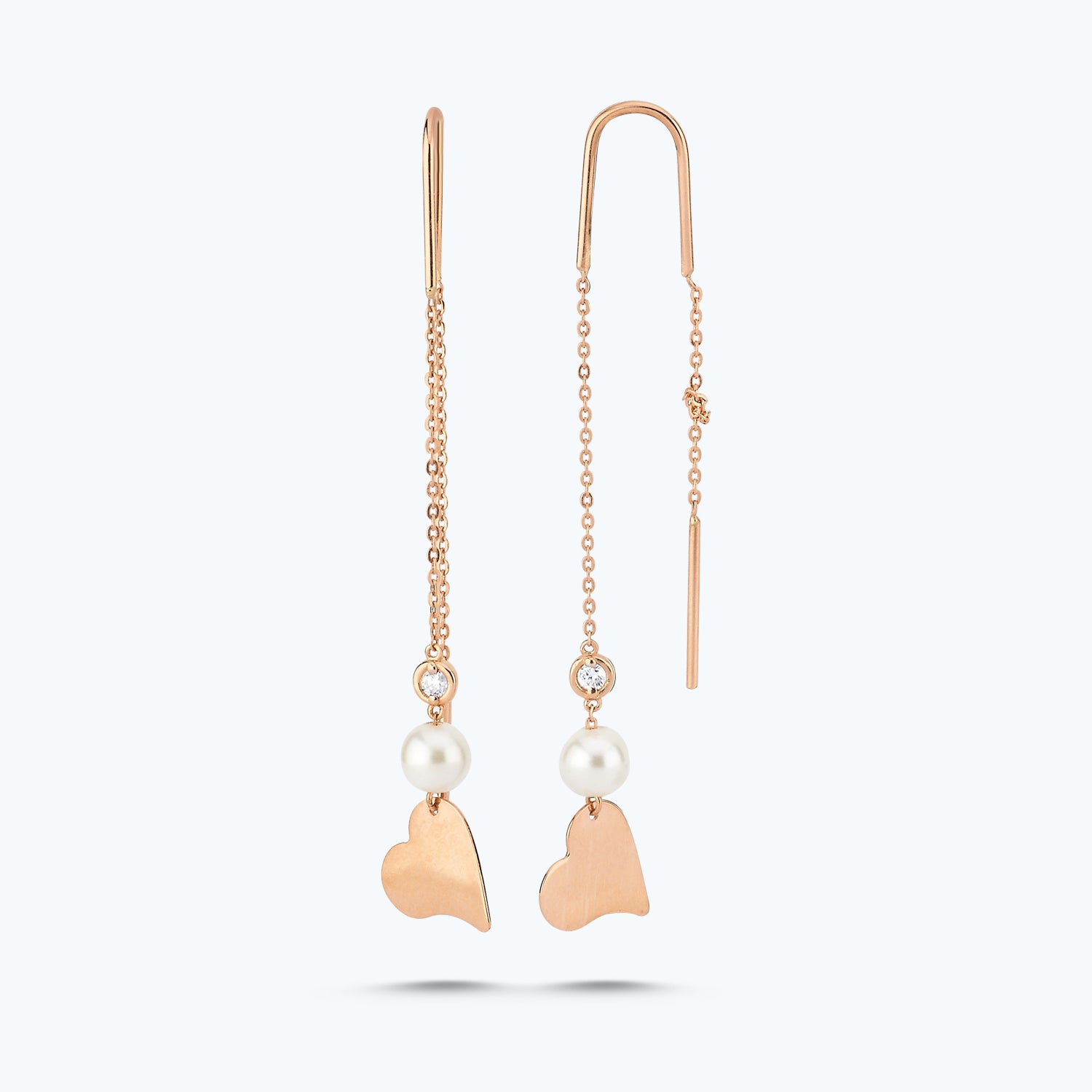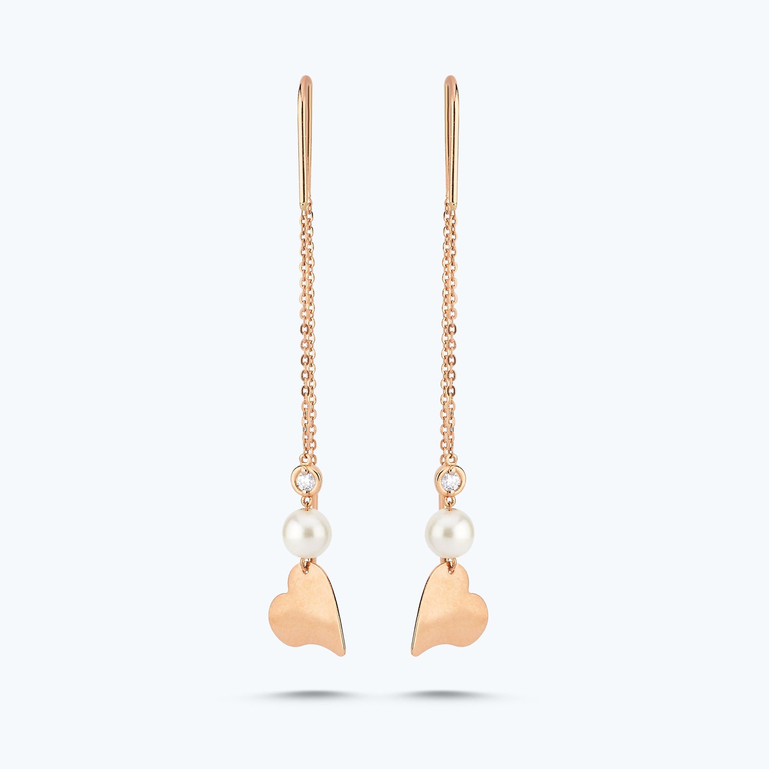 Introducing Altınbaş Jewelry's Pearl Diamond Earrings, a true statement of timeless elegance and sophistication. Crafted meticulously with perfect symmetry of design, these earrings are more than just a piece of jewelry - they are a symbol of love and harmony. Our Pearl Diamond Earrings are fashioned from luxurious 14K gold, a metal renowned for its lustrous glow and durability, ensuring that this accessory will retain its beauty for years to come. The gold's pink hue offers a soft, romantic touch, making these earrings an ideal gift for that special someone in your life. At the heart of each earring is a round diamond, its facets catching and reflecting light to create a captivating sparkle. These diamonds are not just gemstones; they are expressions of love, embodying the harmony and unity that define your relationship. The earrings are completed with a pearl, adding a touch of classic elegance to the design. Pearls are timeless and versatile, making these earrings suitable for any occasion, be it a formal event or a casual day out. These Pearl Diamond Earrings, with their blend of classic and contemporary elements, are more than just a fashion statement. They are a reflection of the wearer's refined taste and sophistication. When you wear Altınbaş Jewelry, you're not just wearing a brand. You're wearing a promise of quality, elegance, and timeless beauty. Choose Altınbaş Pearl Diamond Earrings, and let your style speak volumes about your elegance and sophistication.