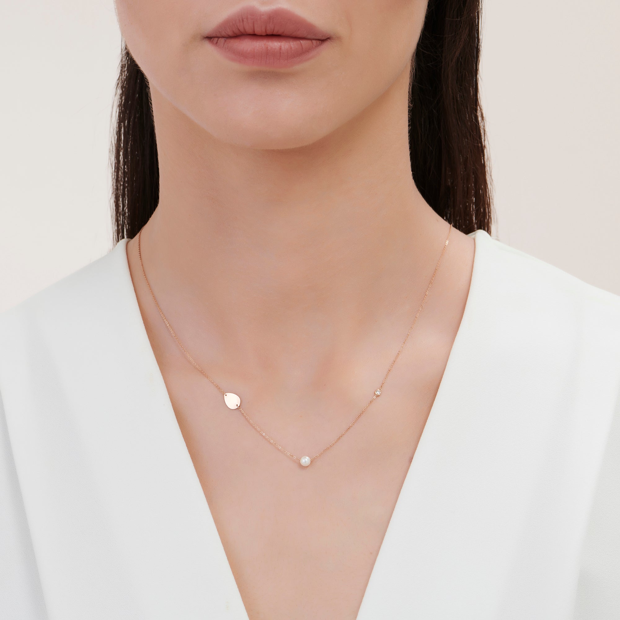 Introducing the Pearl Diamond Necklace from Altınbaş Jewelry, a symbol of infinite beauty that is designed to captivate and inspire. This luxurious piece is meticulously crafted from 14K gold, offering an enduring shine that is sure to make a statement. The necklace's pink hue adds a touch of warmth and femininity, making it a perfect representation of compassion and nurturing. The centerpiece of this necklace is its round diamond, carefully selected for its brilliance and sparkle. This diamond is a testament to the epitome of luxury and wealth, adding an unparalleled level of sophistication to your jewelry collection. The combination of the radiant diamond with the lustrous 14K gold creates a stunning contrast, making this necklace a must-have accessory for any occasion. The Pearl Diamond Necklace is more than just a piece of jewelry; it's a testament to the infinite cycle of beauty. The exquisite design and superior craftsmanship of this piece embody the quality and sophistication that Altınbaş Jewelry is known for. Whether you are looking to indulge in self-love or searching for the perfect gift for a loved one, this necklace is sure to impress. Its timeless elegance and unique charm make it a piece that can be cherished for years to come. Experience the joy of wearing this Pearl Diamond Necklace from Altınbaş Jewelry, a piece that beautifully merges the allure of diamonds, the warmth of gold, and the elegance of pearls. This necklace is not just an accessory, it's a statement of luxury and class.
