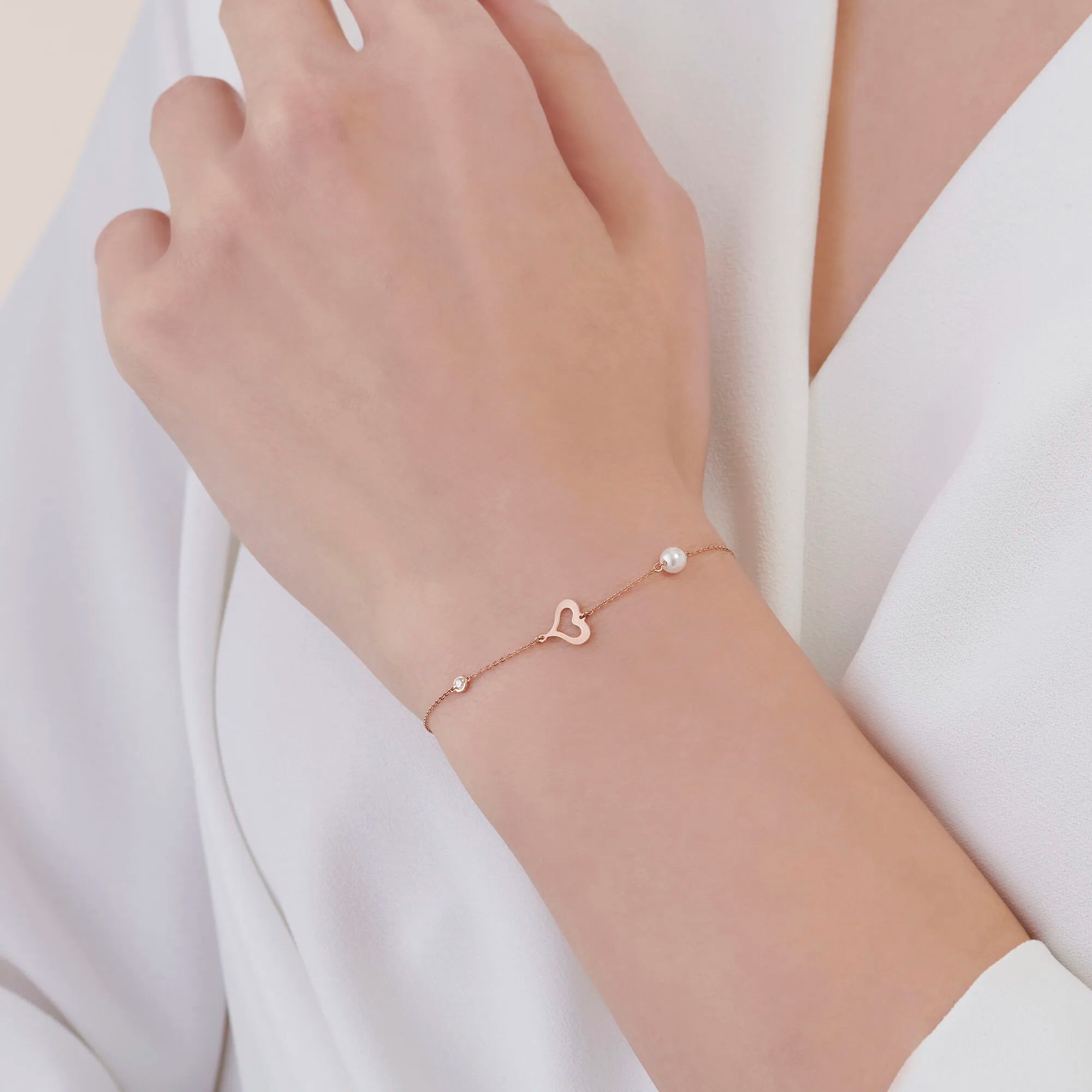 0.02 ct Pearl Heart Diamond Bracelet