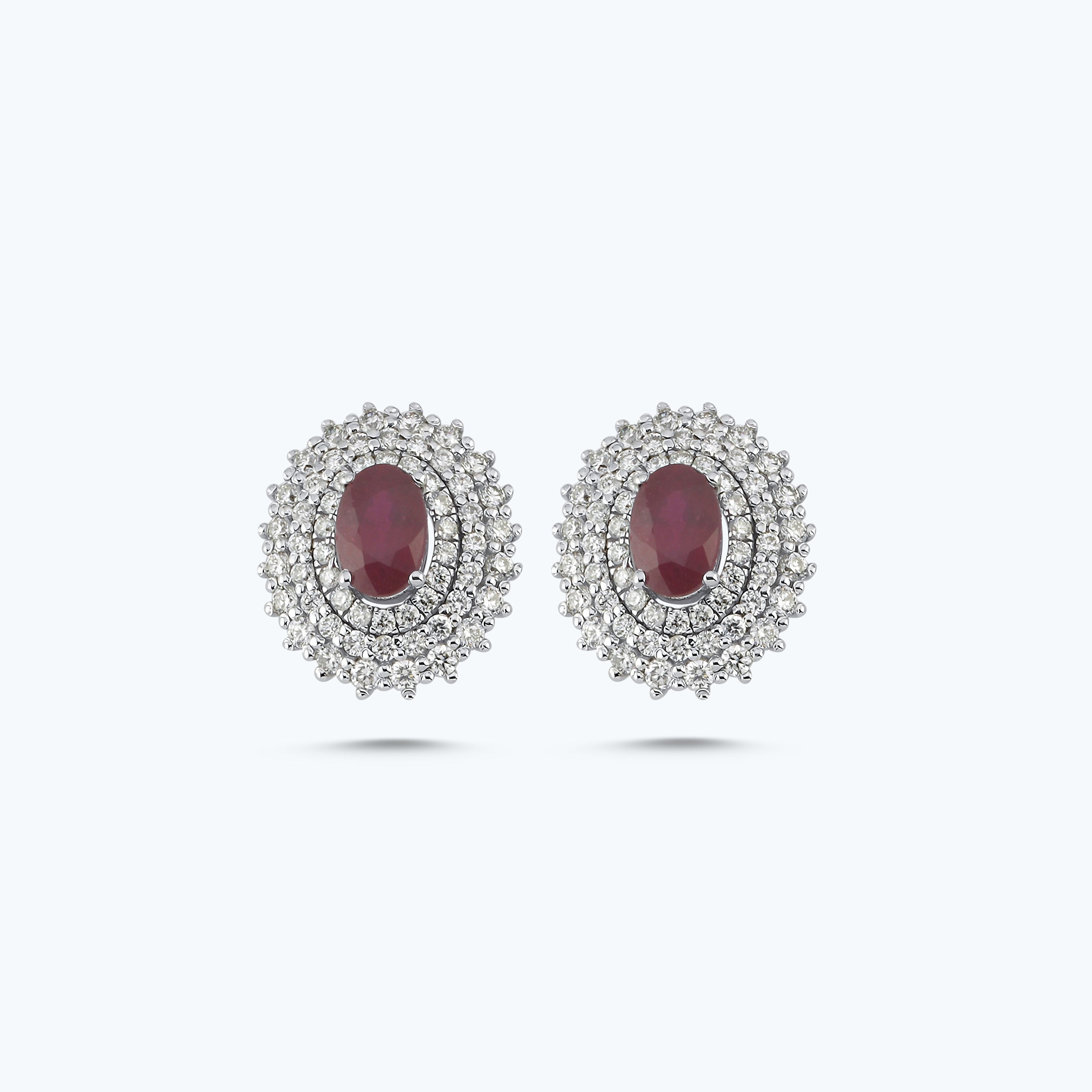 Homepage > Earrings > Oval Diamond Ruby Earrings
