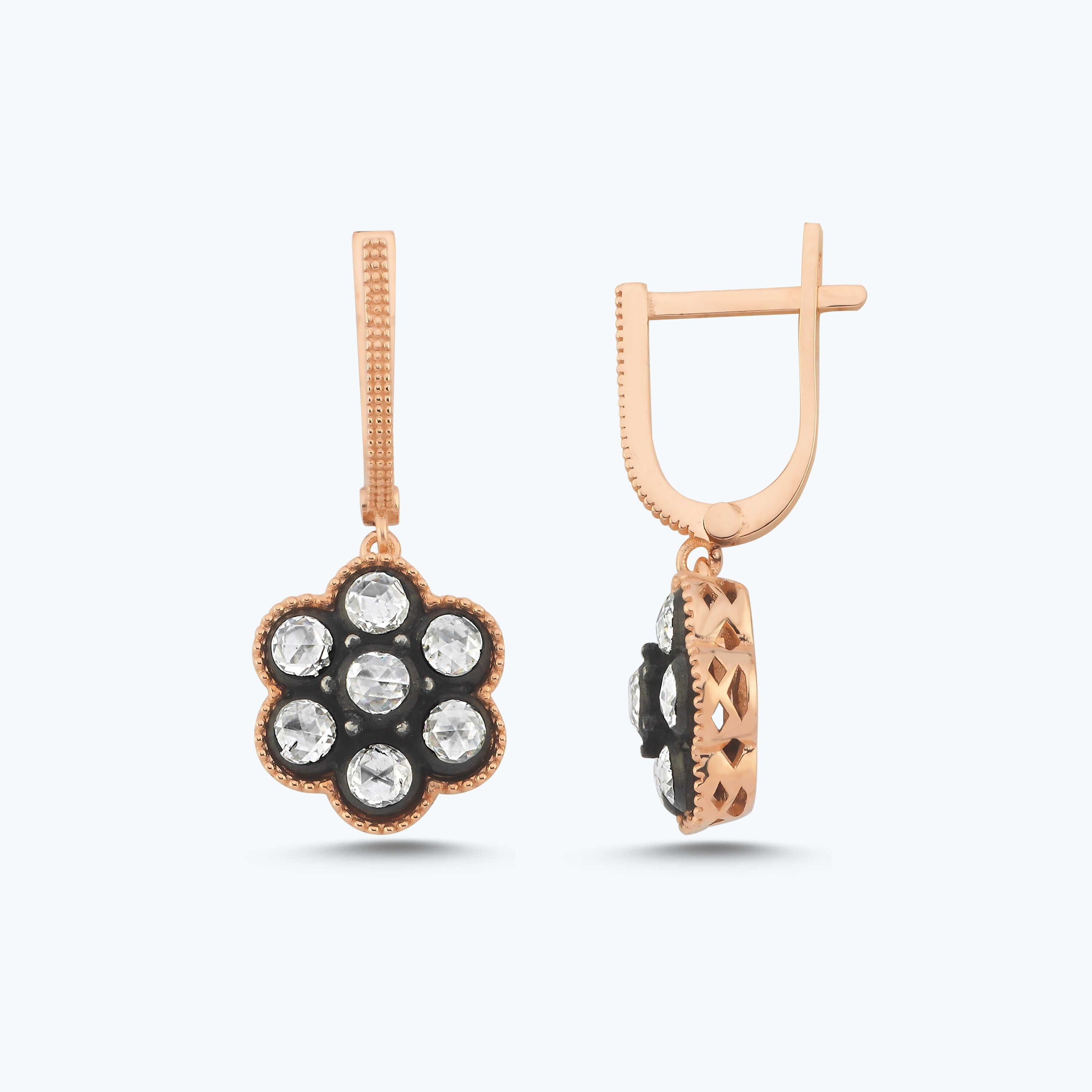 Homepage > Earrings > Diamond Rose-Cut Flower Earrings