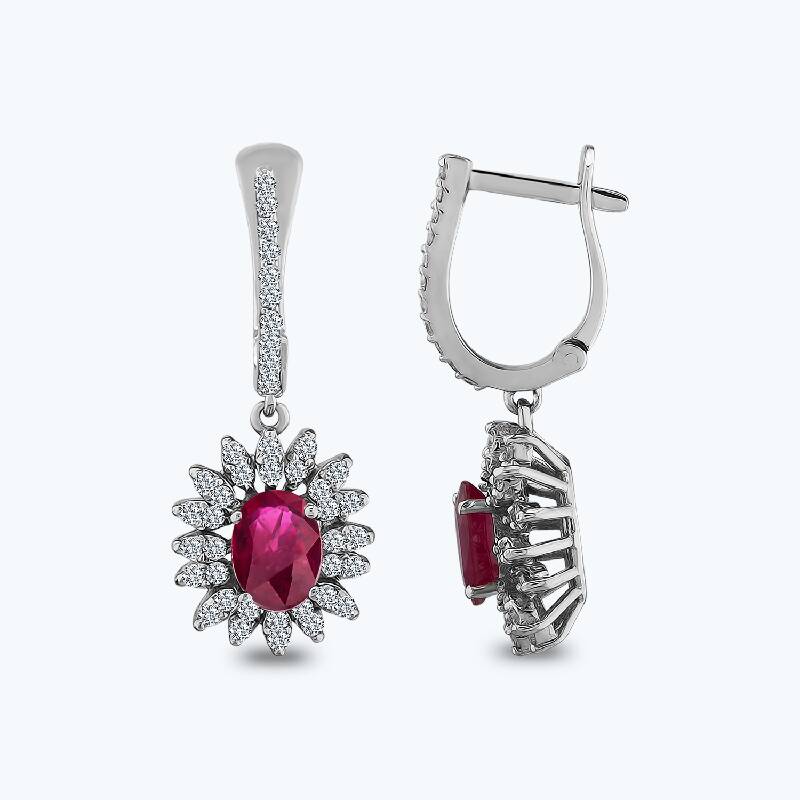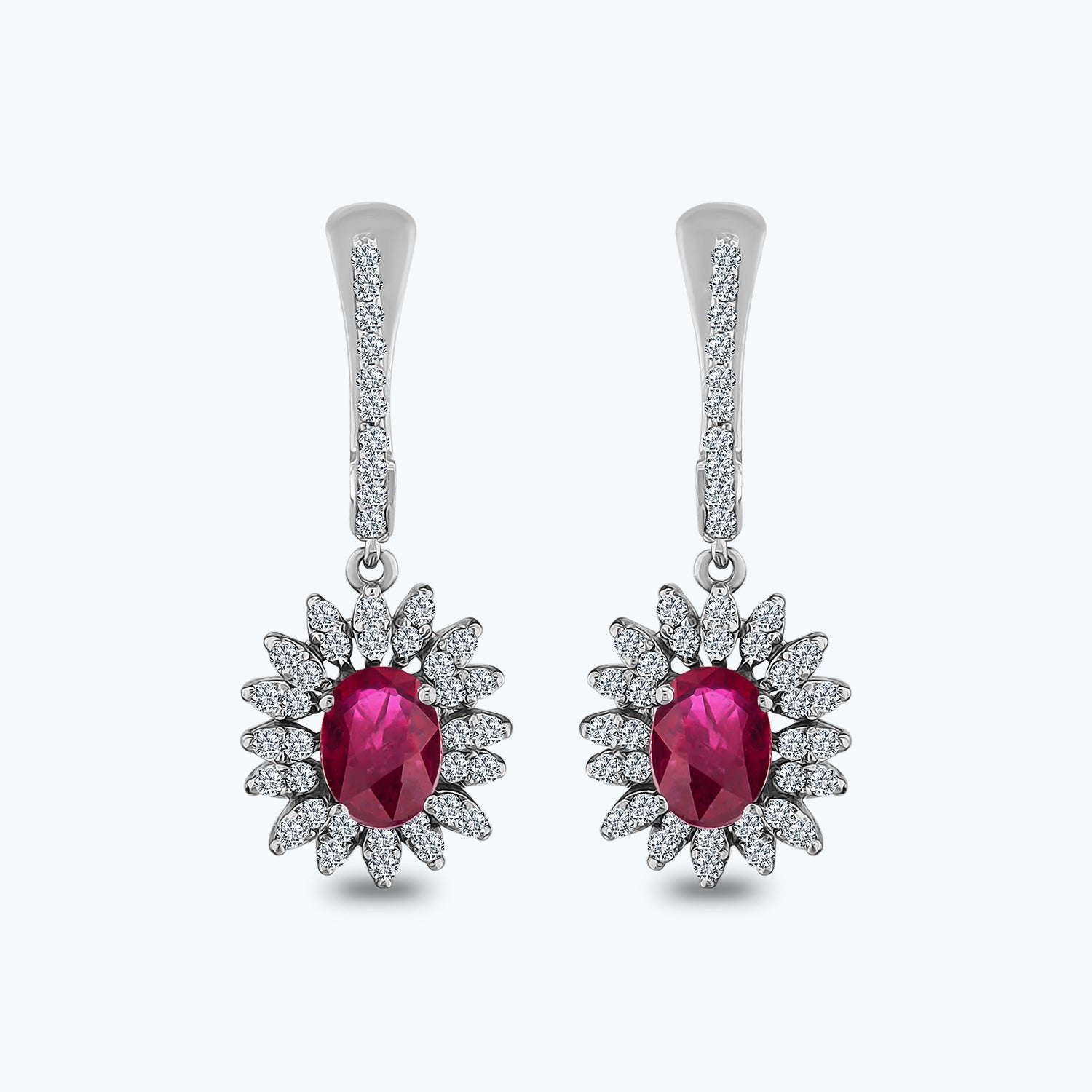 Introducing the Ruby Diamond Earring from Altınbaş Jewelry, a piece that embodies sophistication, quality, and the grace of simplicity in every detail. Crafted from 14K white gold, this alluring piece radiates warmth and glow, enhancing your natural beauty and complementing your charm. The earring features a magical gemstone at its heart - a vibrant, oval-shaped ruby. Known as a symbol of passionate love, the ruby's rich color is a perfect way to express your unique personality. Each ruby is embraced by a halo of round diamonds, adding an extra sparkle that is sure to catch the eye. The dangle design of these earrings adds a dreamy, elegant touch, allowing the gemstones to sway gently with your movements. This design element not only adds to the visual appeal but also enhances the earrings' versatility, making them suitable for both casual and formal occasions. The diamonds used in these earrings are of G color and SI clarity, a testament to Altınbaş Jewelry's commitment to using only the finest materials. The combination of ruby and diamond creates a colorful journey of self-expression, allowing you to showcase your style with confidence and elegance. These earrings are not just a piece of jewelry; they are an embodiment of timeless elegance. The Ruby Diamond Earring from Altınbaş Jewelry is a symbol of pure elegance, designed for women who appreciate quality and sophistication. Whether as a gift for a loved one or a treat for yourself, these earrings are a beautiful addition to any jewelry collection.