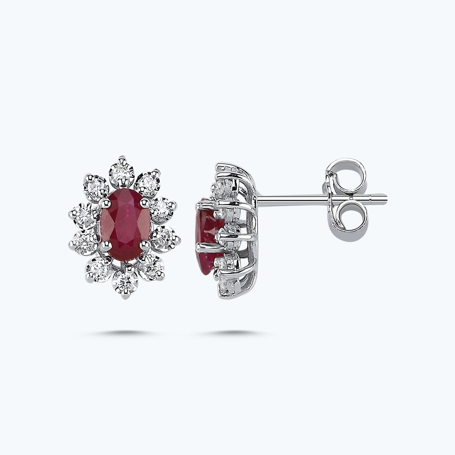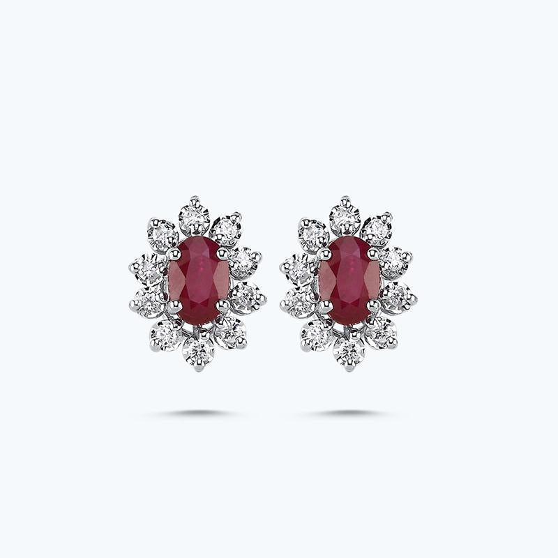 Step into the world of luxury with Altınbaş Jewelry's Ruby Diamond Earrings. These earrings are a bold and assertive statement piece, designed for the woman who knows her worth. Crafted from 8K white gold, the earrings radiate the warmth and glow that only pure gold can offer. The earrings feature an oval gemstone at their heart, a ruby of the most vivid color. This ruby is more than just a colored stone; it is a symbol of infinite charm, an expression of sophistication that will make you stand out in any crowd. Surrounding the ruby are round diamonds, meticulously cut and set to enhance the radiance of the earrings. These diamonds are not just adornments; they are an integral part of the design, forming an endless loop of elegance around the ruby. The G color of the diamonds ensures that they shine with a brilliance that complements the ruby perfectly. And with an SI clarity, you can be confident that your earrings will sparkle with the utmost intensity. These Ruby Diamond Earrings are not just jewelry; they are a symbol of unique individuality, an eternal symbol of love and commitment. With these earrings, you are not just wearing a piece of jewelry; you are making a statement about who you are. So, why not treat yourself to the luxury you deserve? The Ruby Diamond Earrings from Altınbaş Jewelry are waiting for you.