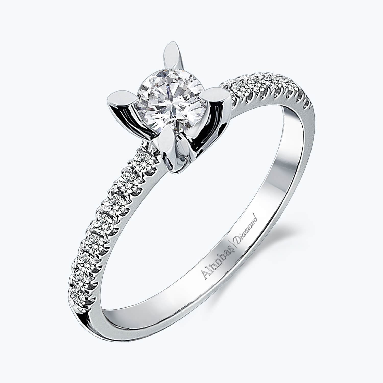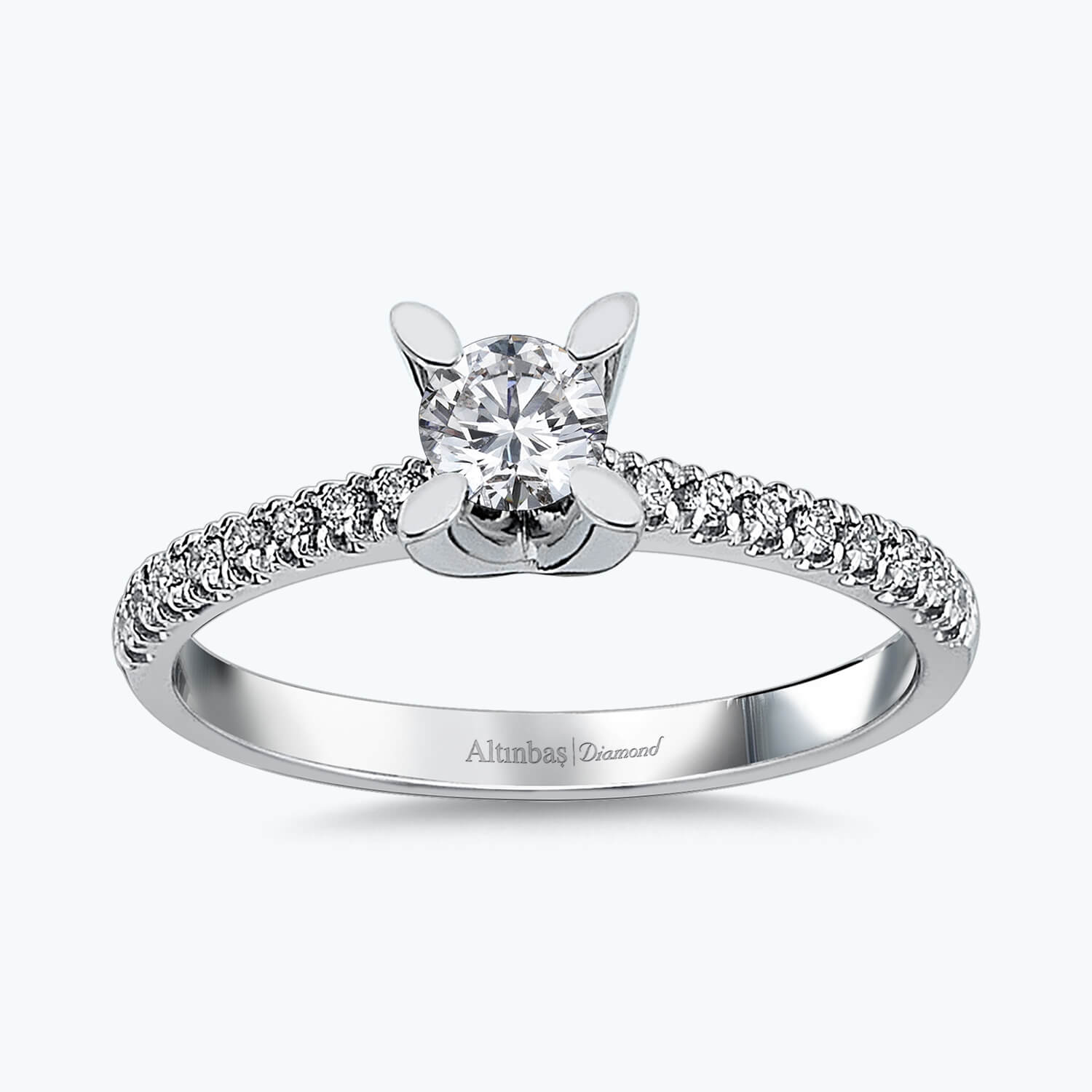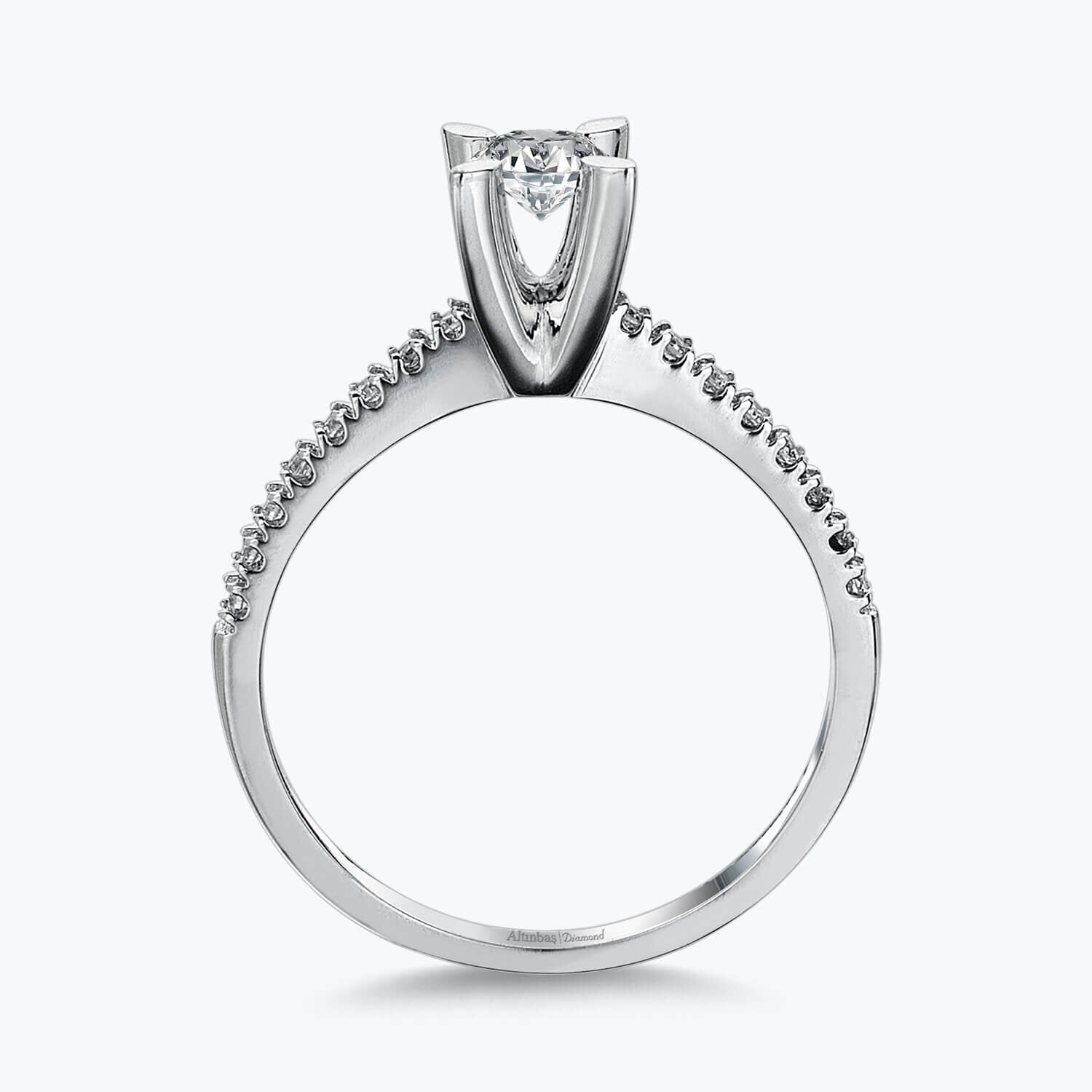 Celebrate your love story with the Solitaire Diamond Ring from Altınbaş Jewelry. This exquisite piece is more than just a ring, it's a symbol of commitment, a promise of eternal love. It's designed to immortalize your love, offering a harmonious balance of style and sophistication that complements your charm. Expertly crafted in 14K white gold, this engagement ring is the epitome of luxury and wealth. The lustrous beauty of the white gold setting is a testament to the quality and craftsmanship that Altınbaş Jewelry is renowned for. The shine of the gold perfectly complements the sparkle of the diamond, creating a beauty that never fades. At the heart of this ring is a stunning round solitaire diamond, a classic choice for engagement rings. The solitaire diamond is known for its timeless elegance and captivating brilliance. This ring showcases the diamond in all its glory, allowing it to take center stage. Adding to its charm are the side stones that flank the solitaire. These additional diamonds enhance the overall sparkle of the ring, creating a dazzling display of light and brilliance. Designed for women who appreciate the finer things in life, this ring is part of our Wedding Collection. It's the perfect choice for the woman who wants to express her commitment to a special person in her life. With this Solitaire Diamond Ring, you're not just giving a piece of jewelry, you're giving a promise of forever. It's more than just a ring, it's a testament to your love story. It's a piece of jewelry that will be cherished for a lifetime.