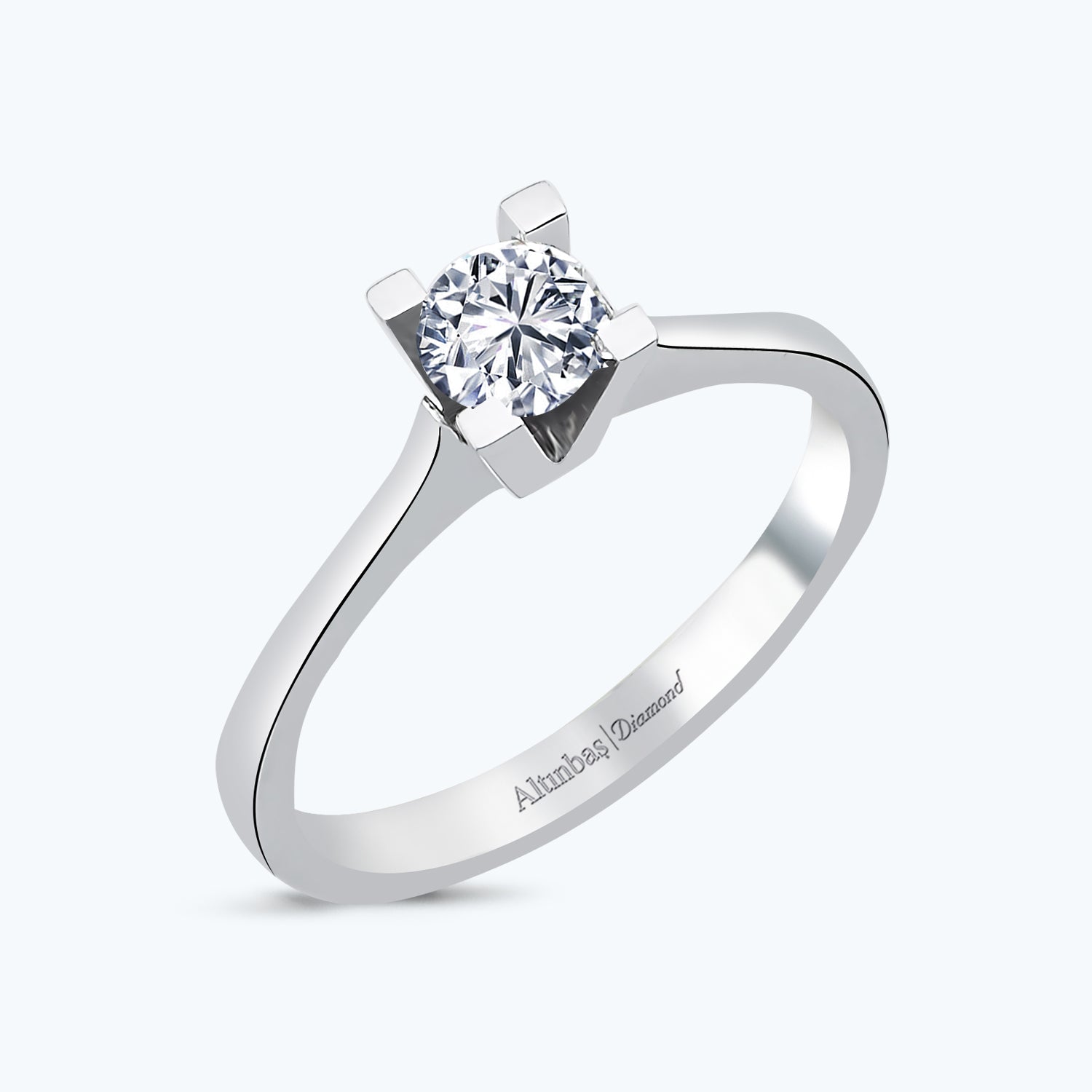Introducing the Solitaire Diamond Ring from Altınbaş Jewelry, a piece that is more than just an accessory. This ring is a symbol of pure luxury, an eternal symbol of power and strength, and a manifestation of a unique love story. Crafted with precision, it embodies sophistication and quality, offering pure elegance in every detail. The ring is made from 14K white gold, a choice of metal that not only enhances its aesthetic appeal but also ensures its durability. The white gold setting provides a beautiful contrast to the solitaire diamond, accentuating its sparkle and brilliance. This ring is not just a piece of jewelry, it's a testament to the infinite cycle of beauty. The centerpiece of this exquisite piece is a round solitaire diamond. The diamond is carefully chosen for its quality and brilliance, reflecting the light in a captivating way that is sure to catch anyone's eye. The solitaire setting allows the diamond to take center stage, making it a perfect choice for an engagement ring. This ring is designed for women who appreciate the finer things in life. It's perfect for those who want to express their love in a unique and luxurious way. The Solitaire Diamond Ring is not just a piece of jewelry, it's a symbol of a love story that is as unique as the person wearing it. Whether you're planning a proposal, celebrating an anniversary, or simply want to show your love, the Solitaire Diamond Ring from Altınbaş Jewelry is the perfect choice. It's more than a ring, it's a testament to an enduring love story, a symbol of power and strength, and a manifestation of pure luxury. Choose the Solitaire Diamond Ring and let your love shine brightly.