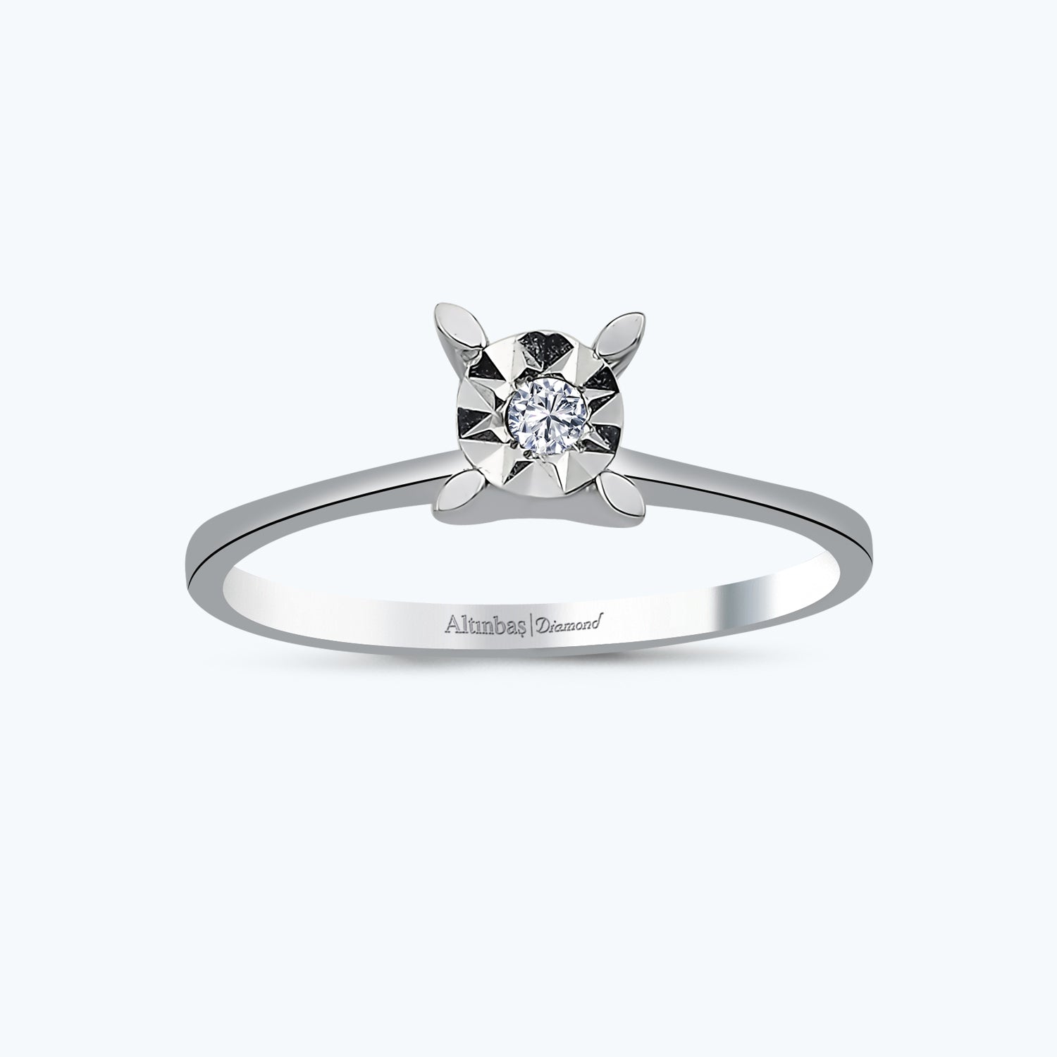 Introducing the Solitaire Diamond Ring from Altınbaş Jewelry, a manifestation of continuous sophistication and timeless charm. This stunning piece is meticulously crafted from 8K white gold, reflecting the brilliance of the sun in every facet. The allure of gold never fades, and this ring is a testament to that enduring charm. As you slide this exquisite ring onto your finger, you'll immediately feel the embrace of sophistication. The white gold band, with its lustrous finish, exudes class and elegance, making it a perfect choice for those who appreciate the finer things in life. At the heart of this ring lies a solitaire diamond, round in shape, symbolizing the eternal cycle of love and commitment. The diamond is expertly cut to catch the light from every angle, ensuring a dazzling display with every movement of your hand. This ring is more than just a piece of jewelry - it's a statement of style and elegance. It is designed to be an engagement ring, a token of love that is as enduring and precious as the bond it symbolizes. The Solitaire Diamond Ring from Altınbaş Jewelry is not just a purchase, but an investment in timeless beauty and sophistication. It's a piece that will not only enhance your personal style but also become a cherished heirloom, passed down through generations. Experience the charm of gold that never fades and the brilliance that reflects the sun with this Solitaire Diamond Ring. It's not just a ring, it's a symbol of love and commitment, exuding class and charm with every wear.