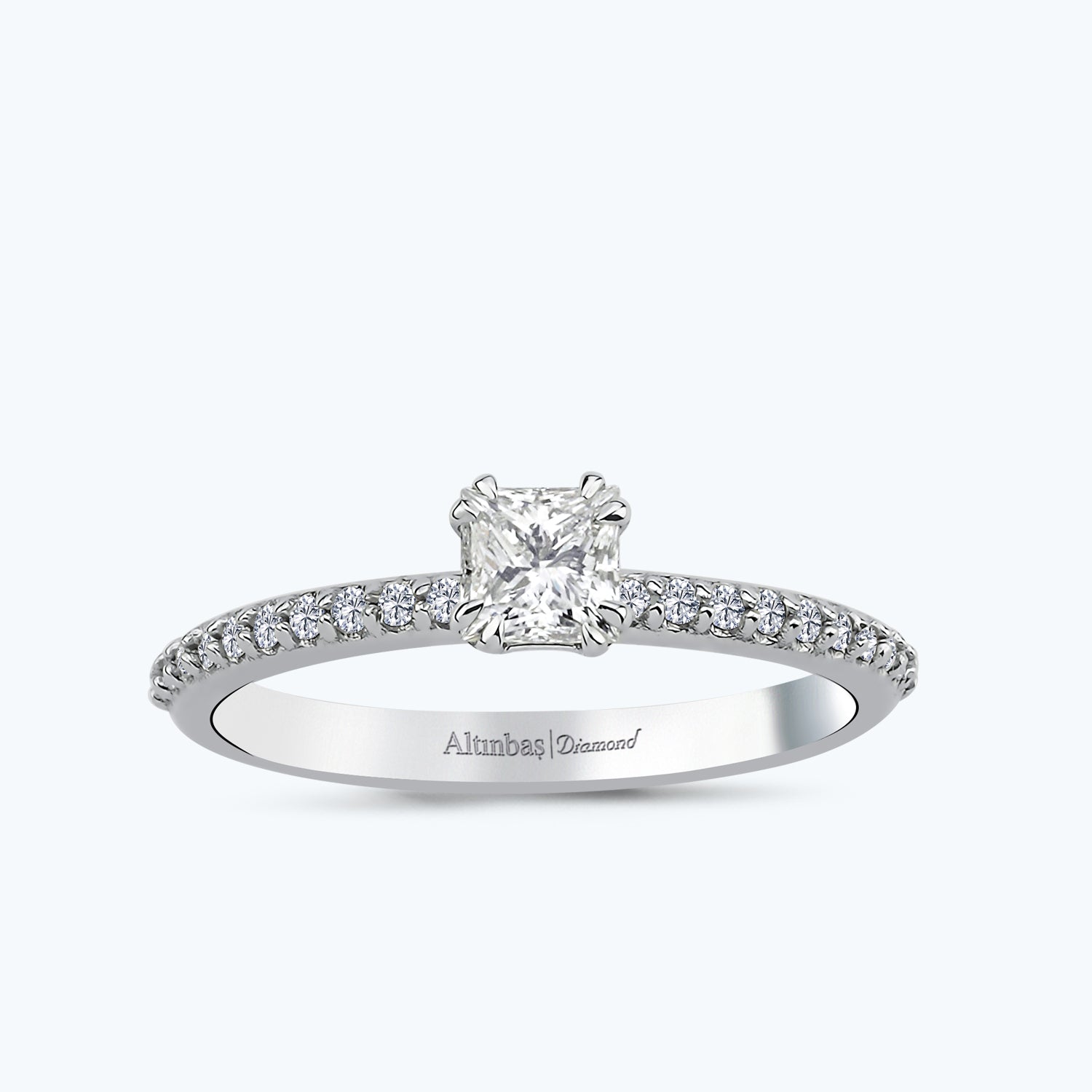 Introducing the Solitaire Diamond Ring from Altınbaş Jewelry, a true embodiment of sophistication and quality. Crafted with meticulous attention to detail, this ring is a stunning confluence of tradition and modernity, designed to captivate and inspire. This ring features a brilliant, princess cut diamond, set in 14K white gold. The diamond is the star of the show, shining with unparalleled brilliance and clarity, reflecting the light in a dazzling array of sparkles. The white gold setting complements the diamond perfectly, adding a touch of elegance and sophistication. The Solitaire Diamond Ring is more than just a piece of jewelry. It is a symbol of divine and royal power, a statement of grace and elegance. The princess cut diamond, with its sharp, clean lines and stunning brilliance, is the perfect representation of this power. It is a symbol of strength, of resilience, and of unyielding beauty. The 14K white gold setting adds a modern twist to the traditional diamond ring. Its sleek design and polished finish give the ring a contemporary feel, while still maintaining the classic elegance of a solitaire ring. This is a ring that respects tradition, but is not afraid to push boundaries. Perfect as an engagement ring, this Solitaire Diamond Ring is a testament to your love and commitment. It is a ring that speaks volumes, that tells a story of love, of promise, and of a future filled with happiness and joy. When you choose the Solitaire Diamond Ring from Altınbaş Jewelry, you are choosing a piece that is timeless, that is elegant, and that is truly unique. It is a ring that will be cherished for a lifetime, a ring that will be passed down through generations. It is more than just a ring, it is a symbol of love, of commitment, and of a bond that is unbreakable.