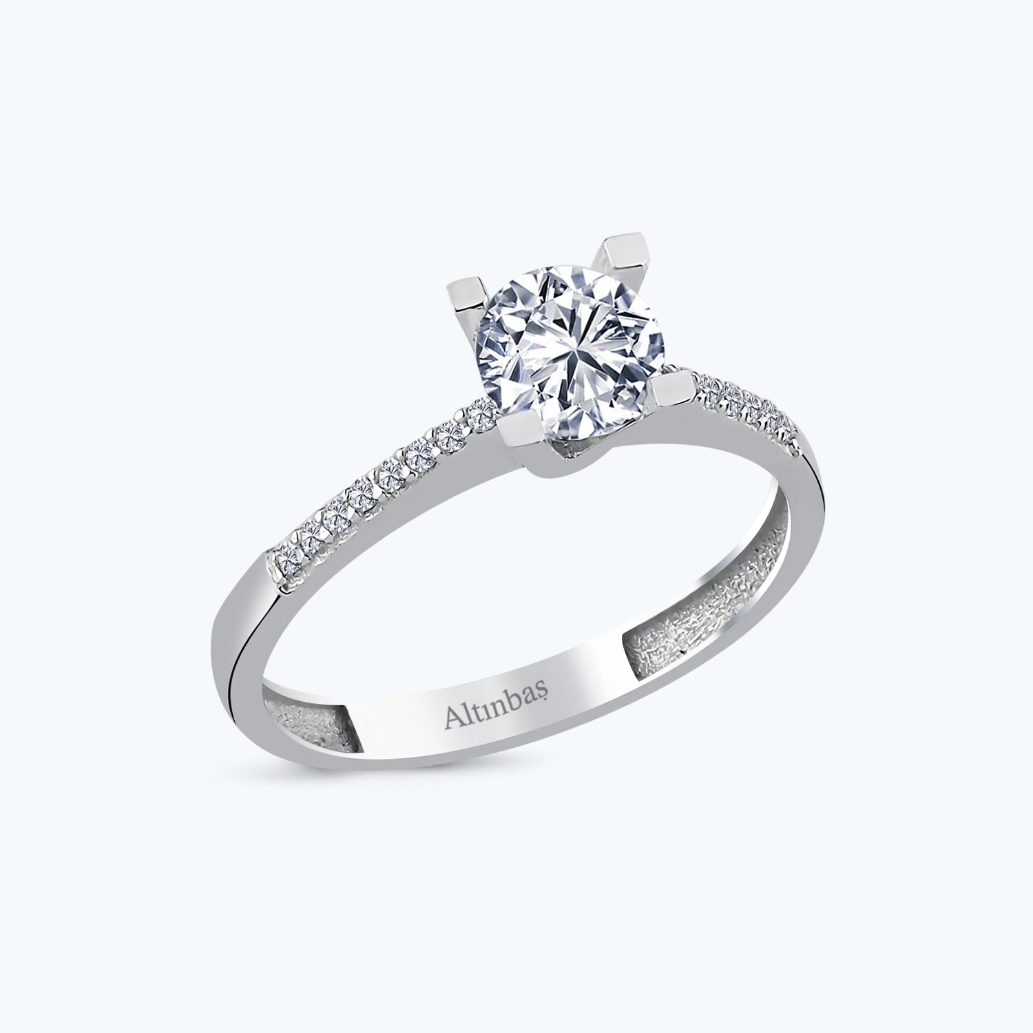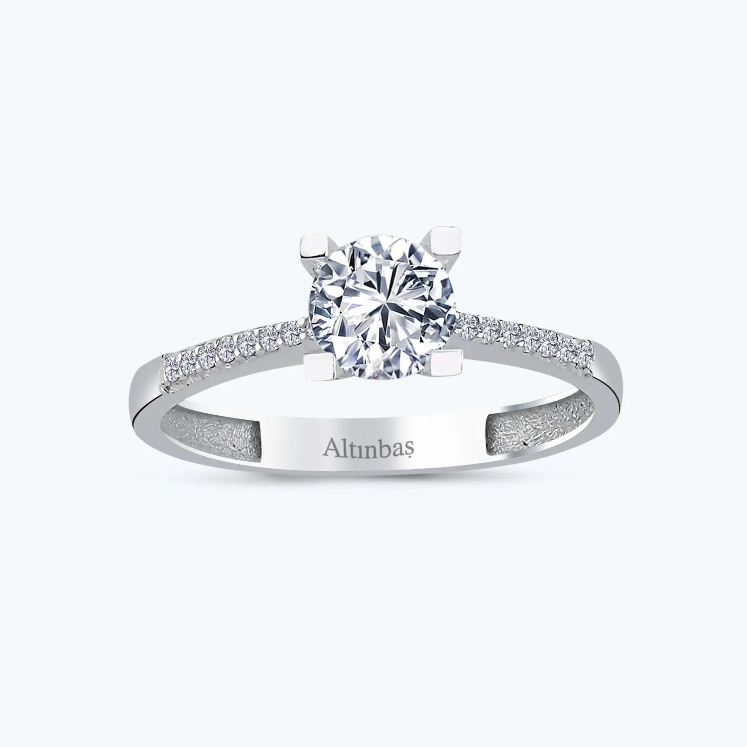 Presenting the Solitaire Gold Ring from Altınbaş Jewelry, a stunning testament to the perfect symmetry of design. This elegant piece is expertly crafted from 14K white gold, embodying the eternal symbol of power and strength that gold has represented through the ages. The centerpiece of this exquisite ring is a round cubic zirconia, brilliantly cut to reflect light from every angle. This gem, known for its durability and flawless sparkle, is set in a solitaire style, allowing it to take center stage and truly shine. The solitaire setting is a classic choice, highlighting the beauty of the single stone and adding a touch of sophistication to any outfit. It is a perfect balance of shine and subtlety, making it suitable for both everyday wear and special occasions. The ring's lustrous white gold band complements the cubic zirconia, enhancing its shine while adding a contemporary feel to this timeless design. The quality of the 14K white gold ensures durability and a lasting shine, promising a piece that will be cherished for years to come. This Solitaire Gold Ring is more than just a piece of jewelry; it's a statement of elegance and sophistication. It's a reflection of the wearer's taste and style, making it a perfect gift for yourself or a loved one. Experience the luxury and quality that Altınbaş Jewelry is known for with this stunning Solitaire Gold Ring. It's not just an accessory, it's a symbol of timeless elegance and enduring strength.