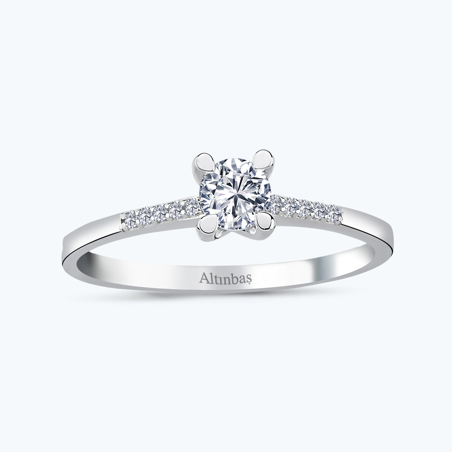 Introducing the Solitaire Gold Ring from Altınbaş Jewelry, a stunning blend of tradition and modernity that is sure to captivate. This magnificent ring is crafted from 14K white gold, a metal known for its durability and timeless appeal. The white gold not only provides a modern twist to the classic gold ring but also enhances the brilliance of the cubic zirconia stones. At the heart of this ring is a solitaire cubic zirconia, a gem that radiates with unmatched sparkle. This solitaire stone, elegantly set, serves as an eternal symbol of power and strength, reflecting the resilience of your love. It's a piece that speaks volumes about the power of making a promise, a promise of endless love and commitment. But the beauty of this ring doesn't stop at the solitaire. It is further adorned with cubic zirconia side stones that add an extra layer of sparkle and sophistication. These side stones not only amplify the ring's brilliance but also beautifully frame the solitaire, making it the star of the show. This solitaire gold ring is not just an engagement ring; it's a testament to the strength of your love and the promises you make. It's a ring that carries a powerful message, making it an ideal choice for women who appreciate the confluence of tradition and modernity. With its exquisite design and exceptional craftsmanship, this Solitaire Gold Ring from Altınbaş Jewelry is more than just a piece of jewelry. It's a symbol of love, a promise of commitment, and a testament to the power and strength of your bond. This ring is truly a treasure that will be cherished for generations to come.