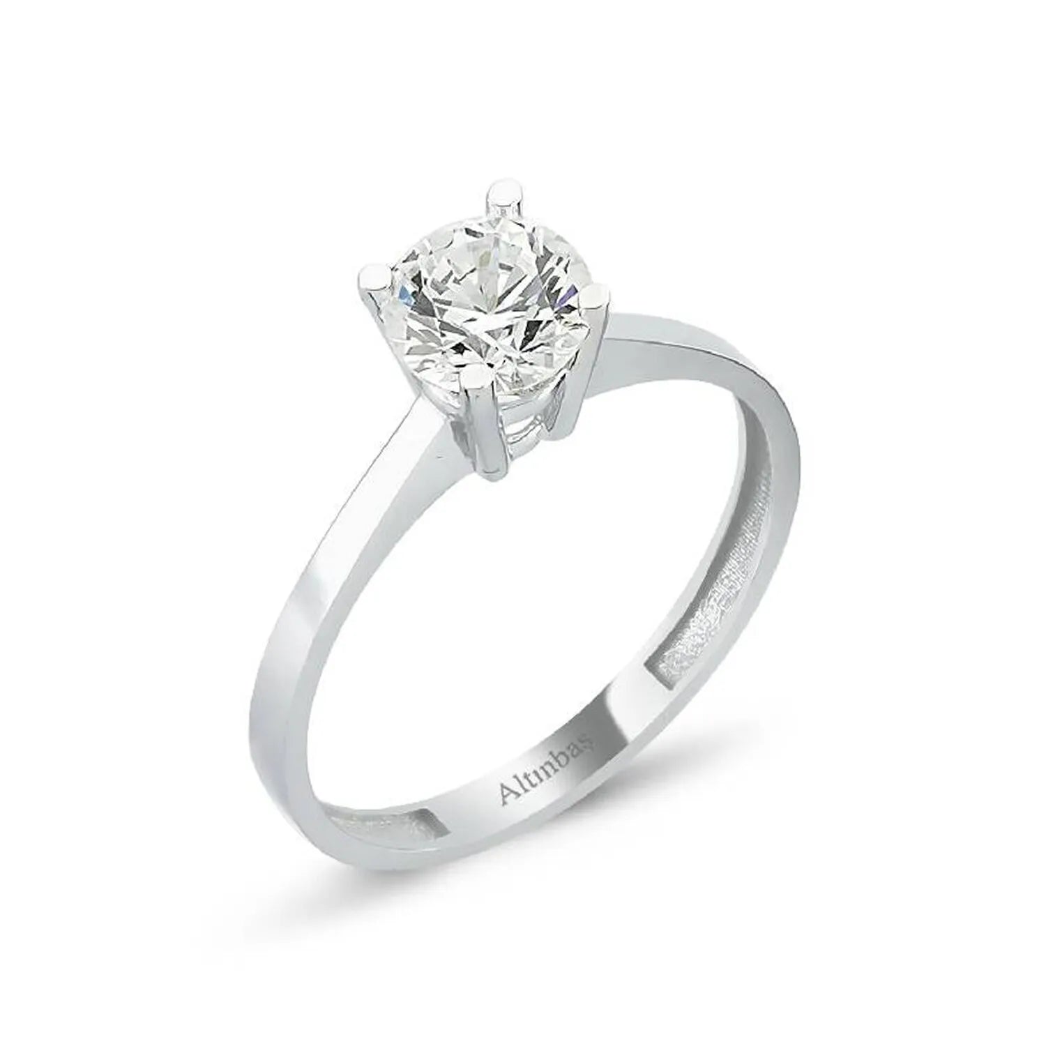 Unveil your love with Altınbaş's Solitaire Gold Ring, a symbol of eternal commitment that is perfectly curated for the stylish woman. This exquisite piece is crafted from premium 14K white gold, a testament to Altınbaş's dedication to quality and sophistication. It is more than just a piece of jewelry; it is a treasure that lasts forever, holding a timeless appeal. The centerpiece of this ring is a stunning Cubic Zirconia solitaire, masterfully set to catch the light from every angle. This exceptional gemstone embodies the rhythm of your heart, reflecting the strength and beauty of your love. Its radiant sparkle is sure to captivate and impress, making it an ideal choice for an engagement ring. The sleek, white gold band enhances the brilliance of the Cubic Zirconia, creating a harmonious balance between elegance and simplicity. The ring's design is a perfect blend of traditional charm and modern sophistication, making it a versatile piece that can complement any style. Every aspect of this Solitaire Gold Ring by Altınbaş is meticulously crafted to ensure it meets the highest standards of luxury and refinement. It is a statement piece that speaks volumes about your love story, a unique expression of commitment that will be cherished for years to come. Whether you're planning a romantic proposal or looking for the perfect gift to celebrate a special occasion, this Solitaire Gold Ring is an exceptional choice. It is more than just a ring; it is a symbol of love, a testament to a bond that is as precious and enduring as the gold it is crafted from. Let this beautiful ring be the mark of your everlasting love.
