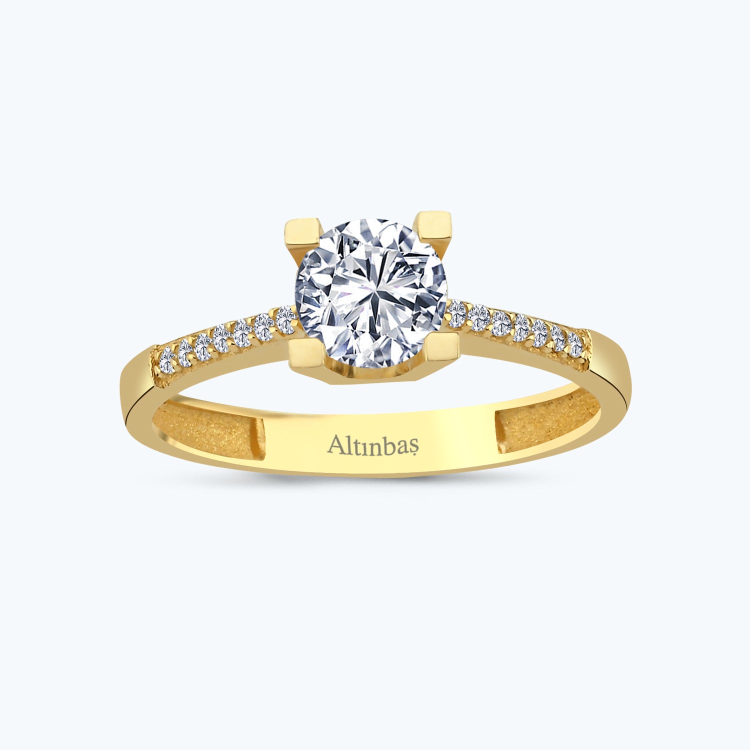 Introducing the Solitaire Gold Ring from Altınbaş Jewelry, a piece that truly embodies the eternal loop of luxury. This stunning ring is meticulously crafted from 14K yellow gold, a testament to the brand's commitment to quality and sophistication. The gold is not just a material, but a symbol of timeless elegance and durability, promising a lifetime of shine and beauty. The centerpiece of this ring is a dazzling round cubic zirconia solitaire. This gemstone is chosen for its brilliance and clarity, capturing and reflecting light to create a mesmerizing sparkle. Its round cut further enhances the stone's radiance, creating a captivating focal point that is sure to draw admiring glances. The Solitaire Gold Ring radiates a warmth and glow that is truly captivating. The yellow gold band complements the cubic zirconia stone perfectly, creating a harmonious balance of sparkle and shine. This piece is more than just a ring; it's a radiant beacon of luxury and sophistication. Wearing this ring is a statement of refined taste and elegance. Its simple yet striking design makes it versatile enough for everyday wear, yet sophisticated enough for special occasions. Whether you are stepping out for a casual lunch or attending a glamorous event, this ring is sure to enhance your ensemble. The Solitaire Gold Ring from Altınbaş Jewelry is more than just a piece of jewelry; it's a symbol of timeless elegance, quality, and sophistication. It's a piece that you'll treasure for a lifetime, a ring that will never lose its glow. Experience the eternal loop of luxury with this stunning piece from Altınbaş Jewelry.