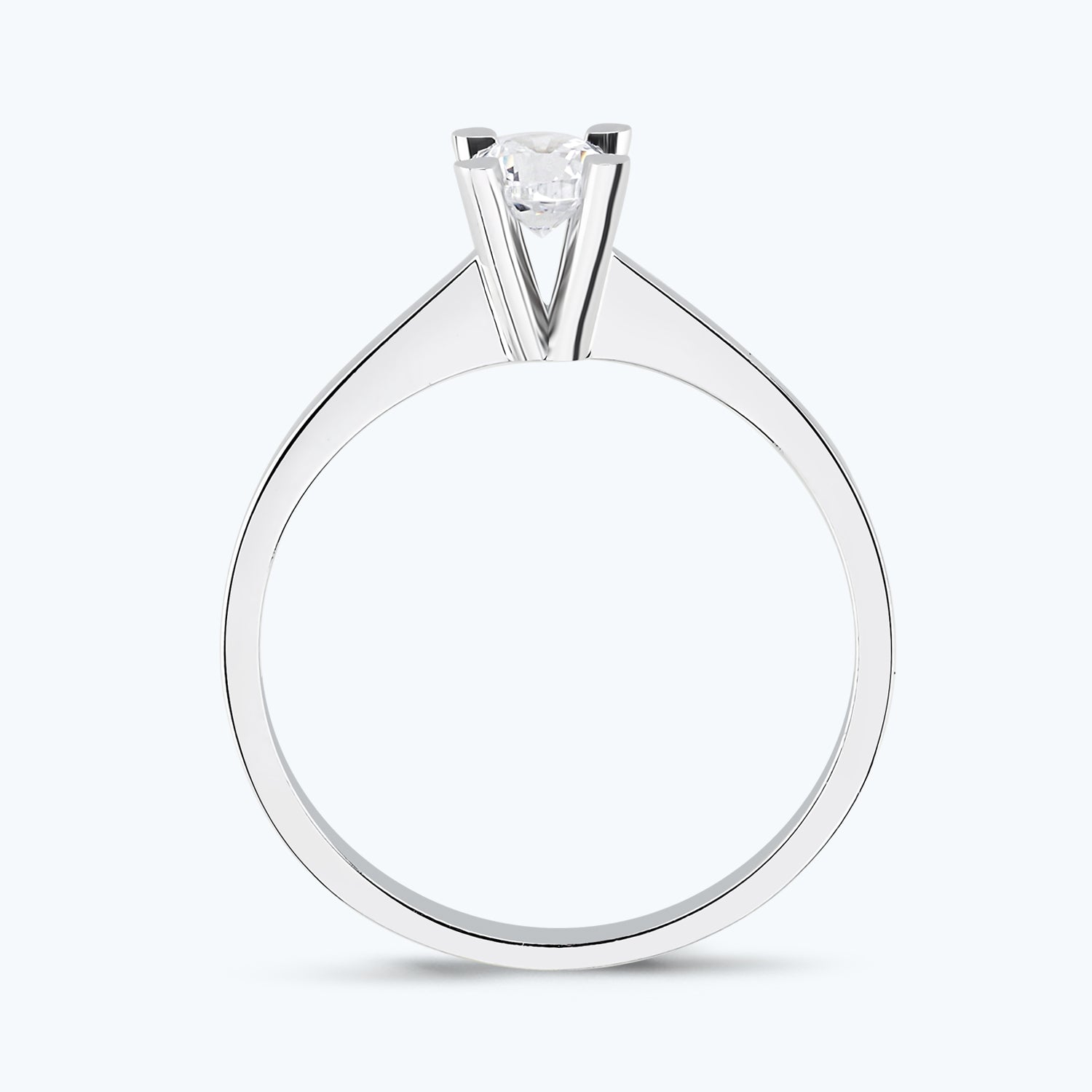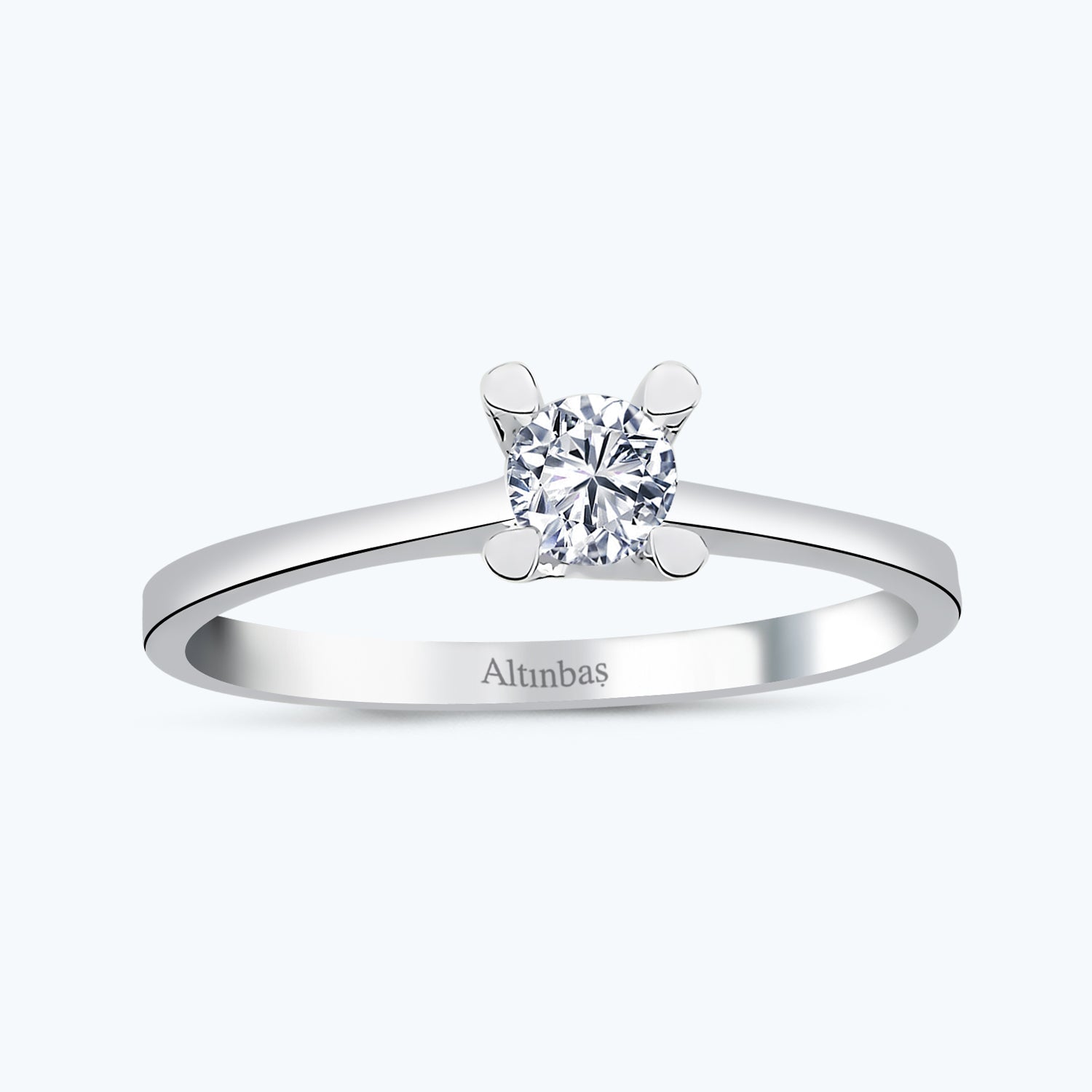 Introducing the Solitaire Gold Ring from Altınbaş Jewelry, a piece that radiates a perfect balance of shine and subtlety. This exquisite ring is crafted from 14K white gold, a metal renowned for its lustrous shine and durability, making it an ideal choice for a lifetime of wear. The centerpiece of this ring is a round Cubic Zirconia, meticulously cut and set to capture and reflect light with every movement. The solitaire setting allows the stone to take center stage, adding a touch of elegance and sophistication to your hand. The brilliance of the Cubic Zirconia paired with the lustrous white gold band creates a stunning visual contrast, making this ring a true standout piece. This ring is not just a piece of jewelry, but a symbol of divine and royal power. Its design is rooted in the concept of strengthening emotional bonds and is an emblem of eternal unity. It's a ring that speaks volumes about your love and commitment, making it the perfect choice for an engagement ring. Designed for women who appreciate the finer things in life, this Solitaire Gold Ring is more than just a piece of jewelry. It's a statement, a testament to the timeless beauty and elegance that Altınbaş Jewelry embodies. Whether it's for a special occasion or a daily reminder of your love, this ring is sure to leave a lasting impression. Experience the Altınbaş difference with this Solitaire Gold Ring, where sophistication meets quality in every piece. This ring is a testament to our commitment to creating jewelry that not only looks beautiful but also holds a deeper meaning.