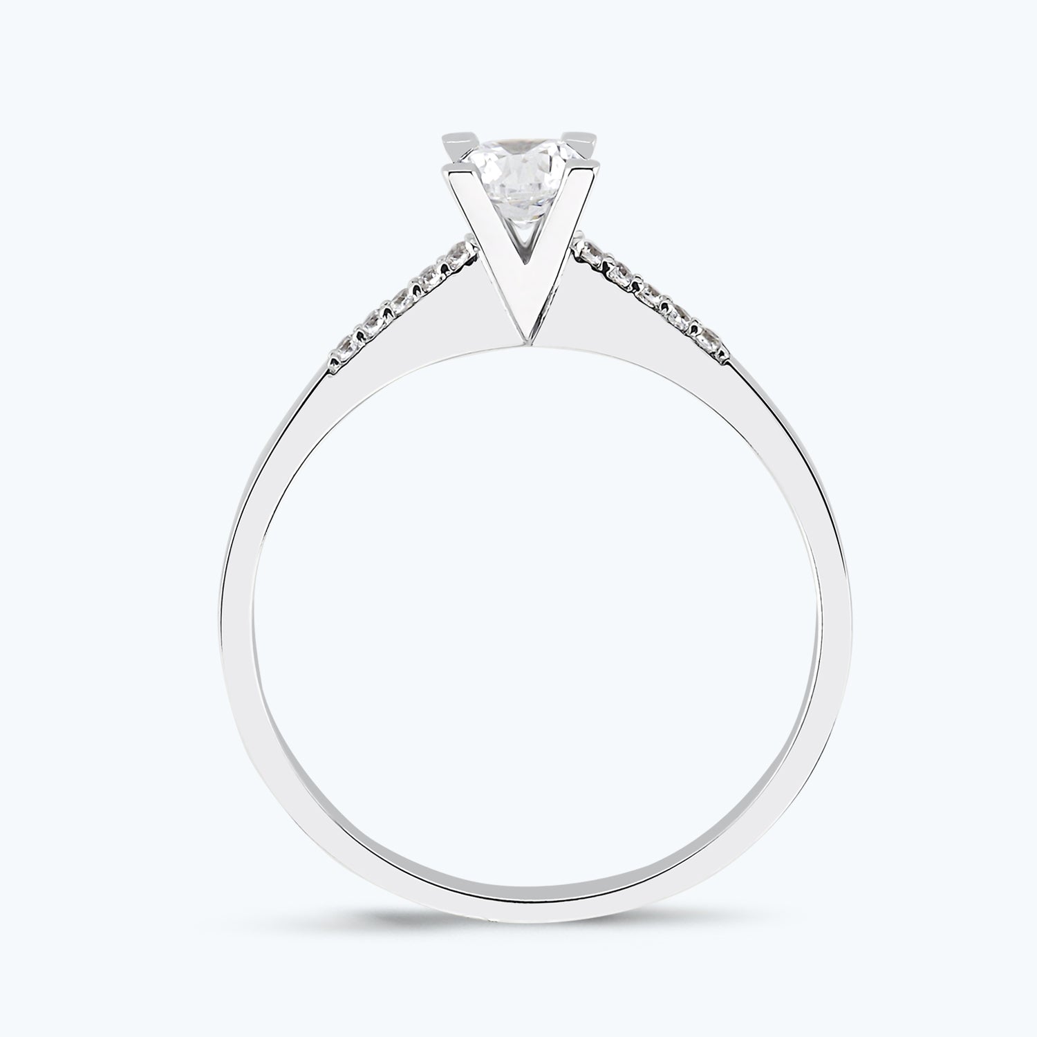 Altınbaş Jewelry presents the Solitaire Gold Ring, a piece that embodies the moment when two hearts unite. Crafted from 14K white gold, this ring is a luxurious testament to your love story. It's not just a piece of jewelry, but a symbol of eternal unity that binds two souls together. This engagement ring is delicately adorned with a round cubic zirconia solitaire, a centerpiece that symbolizes the purity of the heart, and a perfect balance of shine and subtlety. The solitaire, in its simplicity and elegance, is a timeless symbol of love and commitment. But the beauty doesn't stop there. The band of the ring is meticulously embellished with side stones that add an extra touch of sparkle. These side stones not only enhance the overall aesthetics of the ring but also beautifully complement the solitaire, making it a captivating sight to behold. The ring's white gold composition ensures its durability and longevity, promising to be a part of your love story for years to come. Its sophisticated design is perfect for women who appreciate the blend of tradition and modernity, making it an ideal choice for a promise that lasts a lifetime. With the Solitaire Gold Ring, every day is a reminder of your love. It's not just a ring, but a symbol of the bond you share, a bond as pure and as brilliant as the ring itself. This is Altınbaş Jewelry's promise to you - sophistication, quality, and a touch of eternal unity.