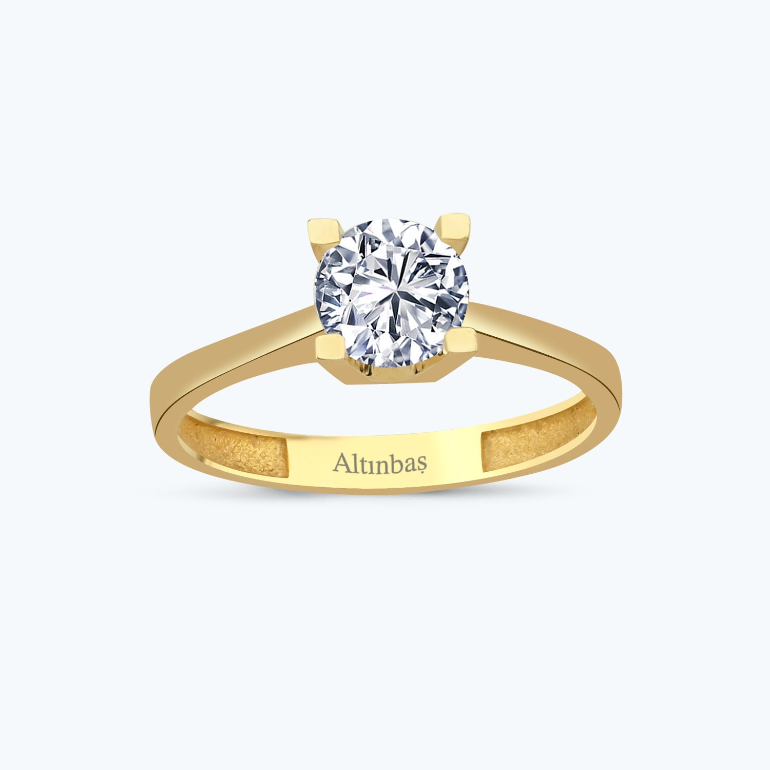 Introducing the Solitaire Gold Ring from Altınbaş Jewelry, a true symbol of eternal unity. This exquisite piece is crafted from the finest 14K yellow gold, embodying the timeless elegance and sophistication that our brand is known for. Each ring is meticulously designed to showcase a captivating round cubic zirconia, set in a solitaire style. This allows the gem to shine brilliantly, capturing and reflecting light with every movement of your hand. The solitaire setting is a timeless choice, representing a love that is pure and enduring. The 14K yellow gold band is a testament to quality and durability. Gold is not just a precious metal, but a statement of luxury and refinement. This ring is a perfect blend of these qualities, making it a piece that will stand the test of time. The use of cubic zirconia adds an extra layer of sparkle to this stunning piece. Known for its dazzling brilliance and clarity, cubic zirconia is a perfect choice for those who appreciate the beauty of precious gems. Whether you're treating yourself or gifting this to a special someone, this Solitaire Gold Ring is more than just a piece of jewelry. It's a symbol of unity, a testament to timeless elegance, and a reflection of your sophisticated taste. Wear this ring with pride, knowing that it's a piece from Altınbaş Jewelry, a brand synonymous with luxury and quality. Let it be a constant reminder of the eternal bond that it represents. Make this Solitaire Gold Ring a part of your jewelry collection today, and experience the allure of Altınbaş.