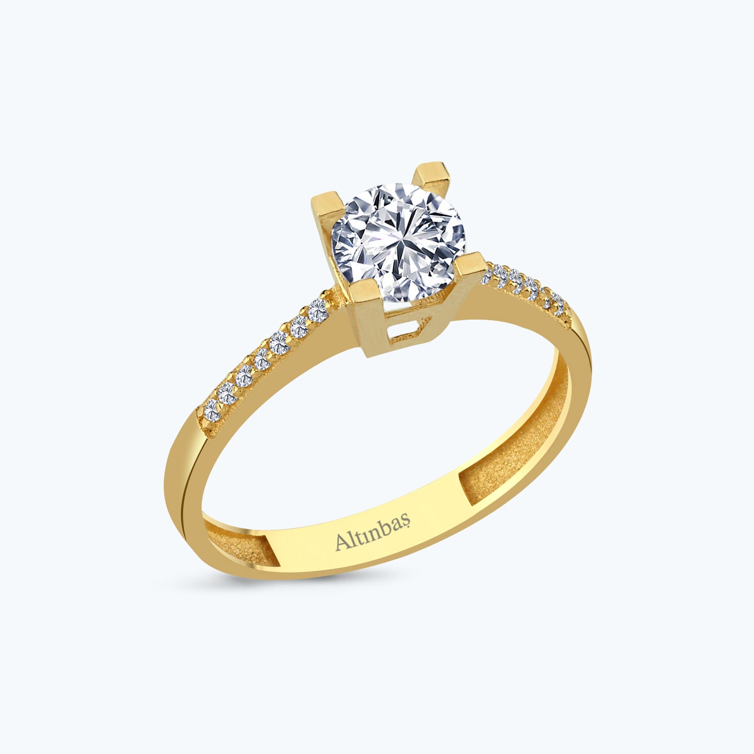 Introducing the Solitaire Gold Ring from Altınbaş Jewelry, a true testament to timeless elegance and sophistication. Meticulously crafted from 14K yellow gold, this ring is designed to be a treasure that lasts forever, promising enduring beauty and quality. The centerpiece of this exquisite ring is a radiant round Cubic Zirconia, artistically set in a solitaire design. The stone's brilliance is beautifully complemented by the warm glow of the yellow gold, creating an eternal round of radiant beauty that's sure to captivate and impress. Every facet of this ring speaks volumes about Altınbaş Jewelry's commitment to delivering exceptional craftsmanship. The 14K yellow gold used in this ring is of the highest quality, ensuring a luxurious feel and a stunning shine that never fades. The solitaire design, a classic and timeless style, adds an air of sophistication to the ring. It allows the Cubic Zirconia to truly shine, making it the perfect statement piece for any occasion. Ideal for those who appreciate the finer things in life, this Solitaire Gold Ring is more than just a piece of jewelry. It's a symbol of elegance, a testament to exquisite craftsmanship, and a treasure that will last a lifetime. Whether you're looking for the perfect gift for a loved one or a special treat for yourself, this ring is sure to be a cherished addition to any jewelry collection. Experience the eternal round of radiant beauty with the Solitaire Gold Ring from Altınbaş Jewelry.