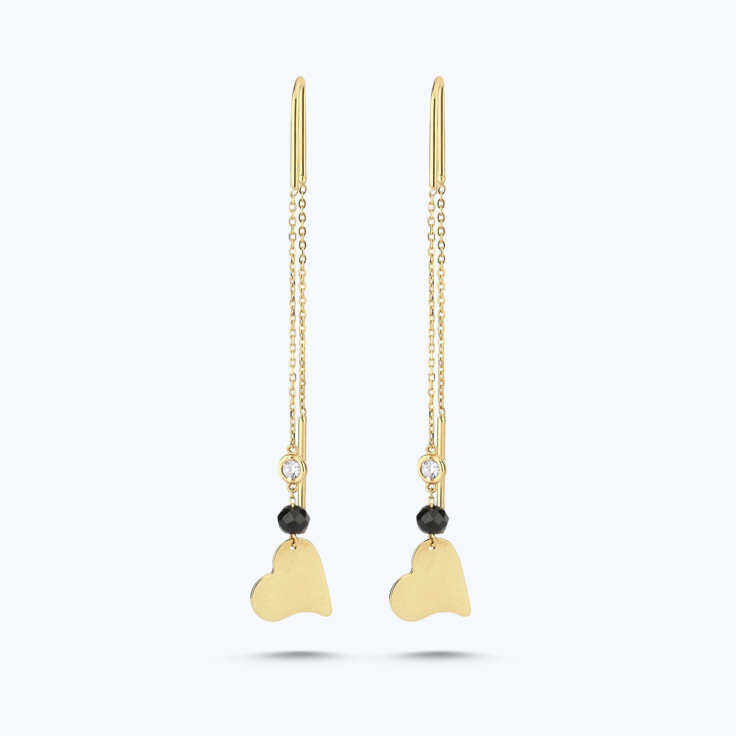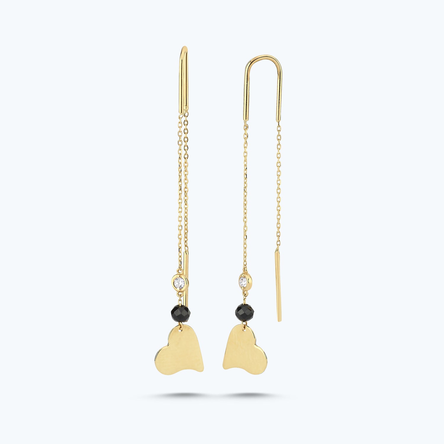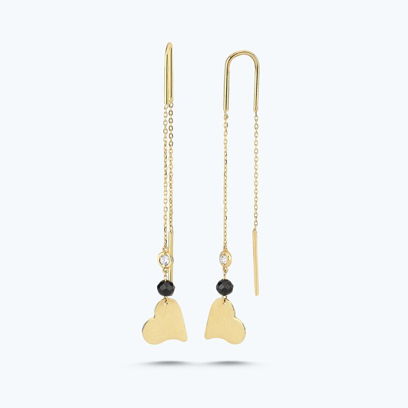 Introducing the Spinel Stone Heart Diamond Earrings from Altınbaş Jewelry, the epitome of sophistication and quality. Beautifully crafted in 14K yellow gold, these earrings are a symbol of infinite charm, designed to captivate and enchant. The focal point of these earrings is the stunning green Spinel stone, nestled in the heart of the design. The Spinel stone is known for its strength and resilience, much like the women who wear our jewelry. Each Spinel stone is meticulously selected, ensuring only the finest quality for our customers. Complementing the Spinel stone, the earrings feature a cascade of round diamonds, dangle in a stunningly elegant design. These diamonds are of G quality, reflecting the light in a mesmerizing dance that will leave onlookers spellbound. The heart shape of these earrings is more than just a design choice. It's a signature of eternal commitment, a promise of love and dedication that is reflected in every facet of these earrings. The heart design, coupled with the dazzling diamonds and the captivating Spinel stone, creates a piece of jewelry that is truly unforgettable. Perfect for every occasion, these earrings are more than just accessories. They are a statement of elegance, sophistication, and timeless beauty. Wear them to a special event, or gift them to a loved one as a sign of your unending affection. At Altınbaş Jewelry, we believe in creating pieces that are not just beautiful, but also meaningful. The Spinel Stone Heart Diamond Earrings are a testament to this belief, combining style, quality, and symbolism in one stunning package.