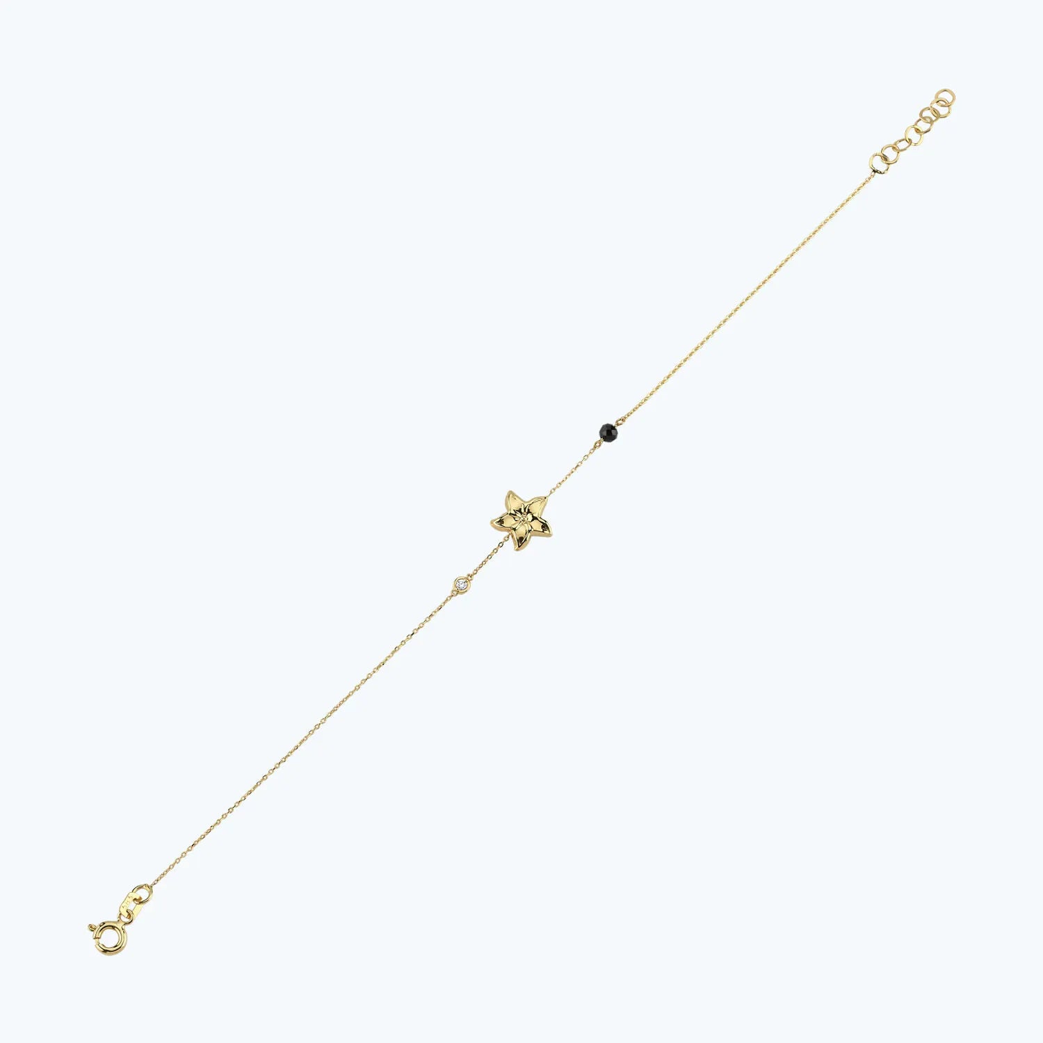 Step into a world of unparalleled luxury with Altınbaş Jewelry's Star Diamond Bracelet. This exquisite piece, meticulously crafted from 14K yellow gold, is more than just a bracelet; it's a tangible representation of the eternal loop of luxury. Every detail of this bracelet has been thoughtfully designed and executed, resulting in a mesmerizing piece that effortlessly captures the essence of elegance and sophistication. The Star Diamond Bracelet features a vibrant green Spinel, a precious gemstone known for its stunning beauty and durability. This gemstone, carefully chosen for its alluring hue, serves as a captivating centerpiece to this remarkable bracelet. It is surrounded by G round diamonds, each one precision-cut to ensure a breathtaking sparkle that is truly second to none. This bracelet isn't just a piece of jewelry; it's an emblem of love and devotion. The interplay of the green Spinel and the surrounding diamonds creates a harmonious design that symbolizes unity and commitment. It's a signature of eternal commitment, a promise sealed in the form of a beautiful piece of jewelry. The Star Diamond Bracelet is an ideal gift for the discerning woman who appreciates the finer things in life. Whether it's for a birthday, anniversary, or just because, this bracelet is sure to leave a lasting impression. With its timeless design and impeccable craftsmanship, the Star Diamond Bracelet from Altınbaş Jewelry is a piece that can be cherished for a lifetime. It's more than just a bracelet; it's a testament to the enduring allure of luxury and the power of devotion.