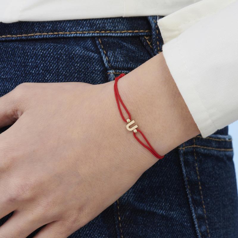 Homepage Jewelry > Bracelets > Letter U Bracelet with Gold String