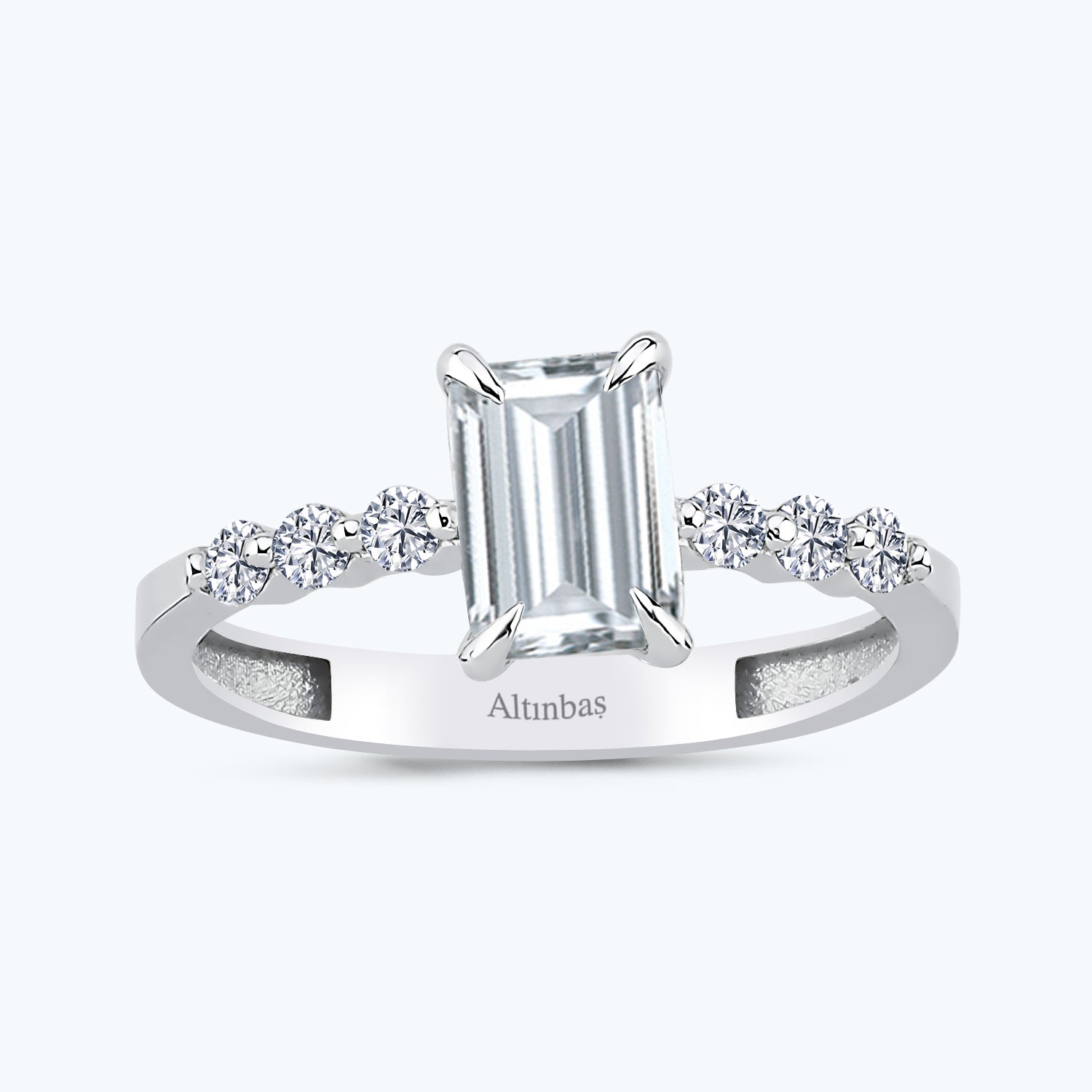 Introducing the Baguette Gold Ring from Altınbaş Jewelry, a piece that effortlessly embodies the power of simplicity and elegance. This minimalist jewelry piece is more than just an accessory; it's a symbol of divine and royal power, making it an ideal gift for anniversaries or any special occasion. Crafted with meticulous attention to detail, this ring is made from 14K white gold, known for its durability and timeless appeal. The white gold provides a sleek, modern backdrop that allows the cubic zirconia stones to truly shine. The ring features a baguette cut cubic zirconia as the centerpiece, a design choice that adds a touch of sophistication and unique charm. Baguette cut stones are known for their elongated shape, giving the ring a clean, geometric look that is both modern and classic. Adorning the sides of the baguette centerpiece are smaller cubic zirconia stones, adding a subtle sparkle that enhances the overall design. These side stones create a delightful contrast with the main stone, drawing the eye to the ring's stunning centerpiece. The beauty of this ring lies in its simplicity. It's not overly ornate, yet its understated elegance makes it a standout piece. It's a ring that can be worn every day, yet it's sophisticated enough for special occasions. This ring from Altınbaş Jewelry is not just a piece of jewelry, it's a testament to the beauty of simplicity and the power of divine and royal symbolism. It's a piece that will not only enhance your jewelry collection but also serve as a beautiful reminder of a special moment or milestone. Experience the allure of the Baguette Gold Ring, a piece that embraces the power of simplicity while exuding an air of sophistication and elegance.